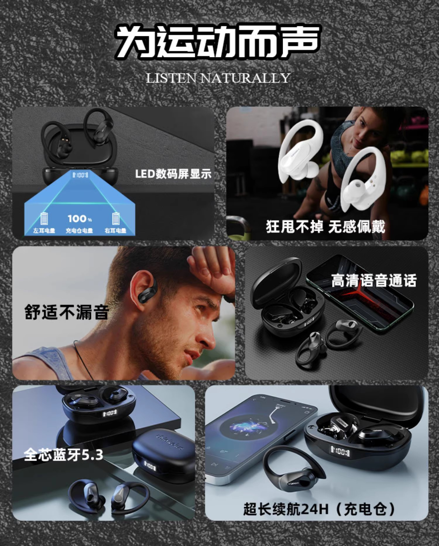 THinkplus LP75 귀걸이형 무선 귀걸이형 비인이어 스포츠 사이클링 및 러닝 음악 헤드폰에 적합스토어 가기