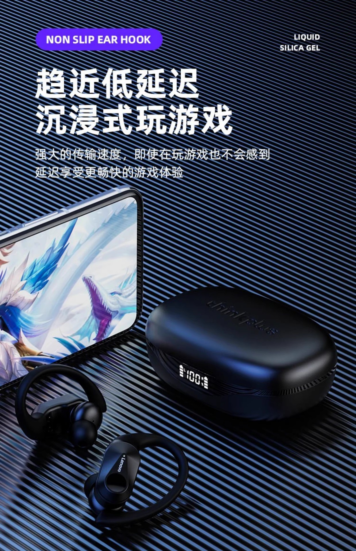 THinkplus LP75 귀걸이형 무선 귀걸이형 비인이어 스포츠 사이클링 및 러닝 음악 헤드폰에 적합