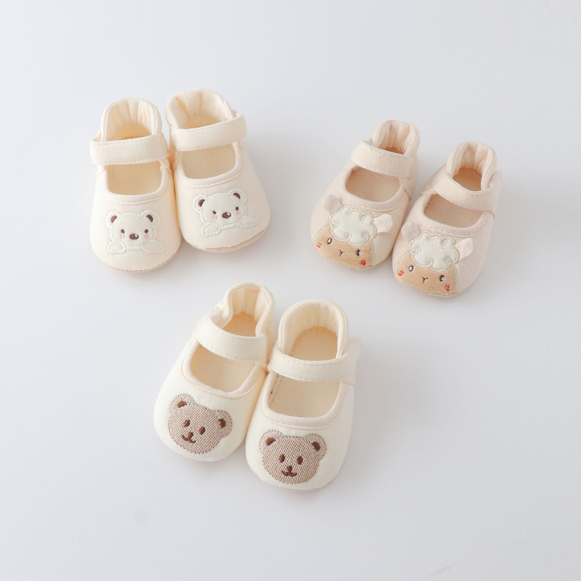 봄 아기 신발, 유아 신발, 봄과 가을 남성과 여성 아기 자수 곰 부드러운 밑창 신발, 싱글 신발