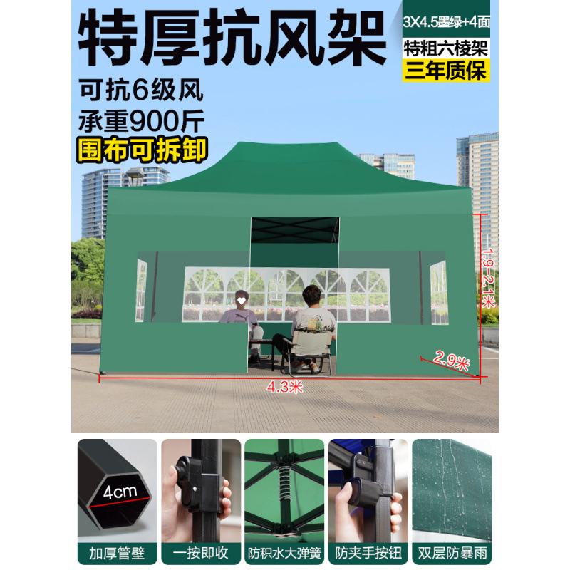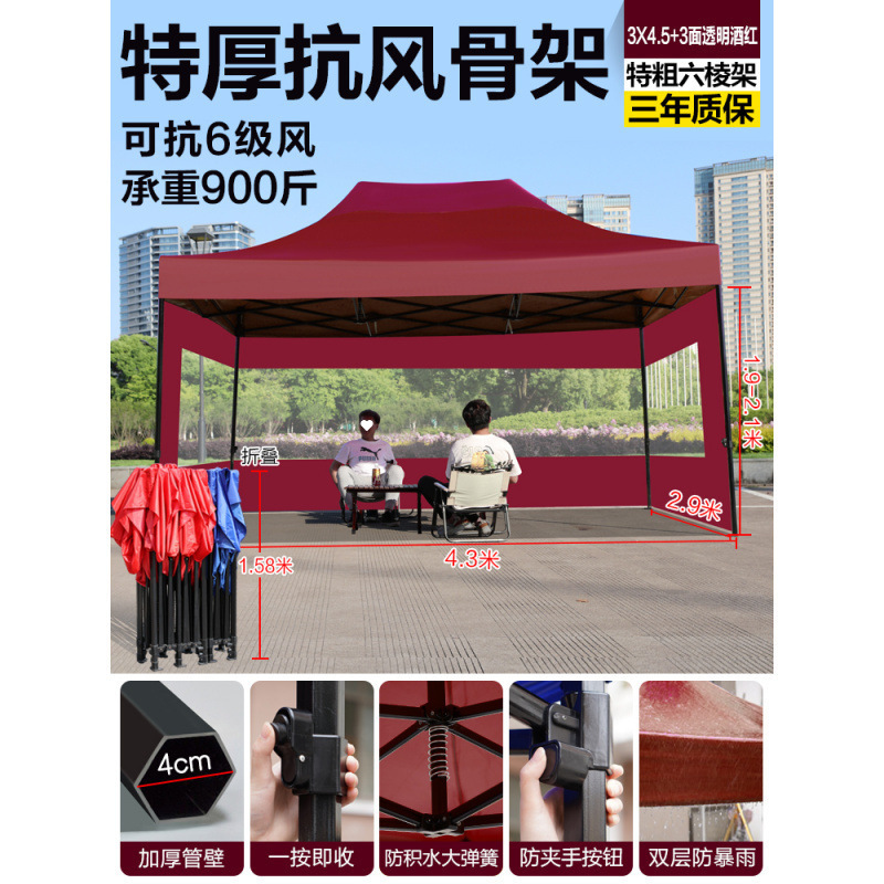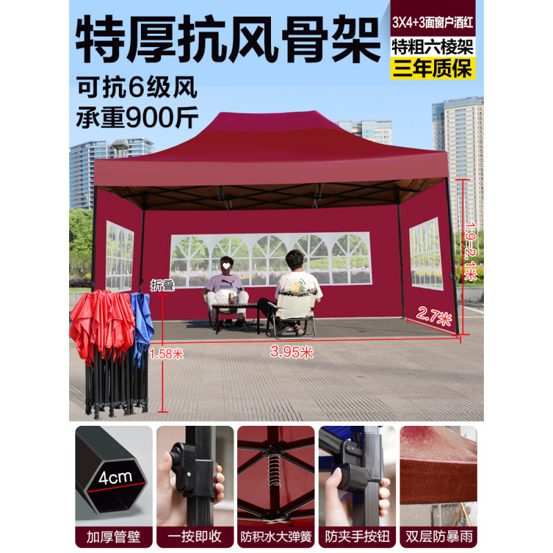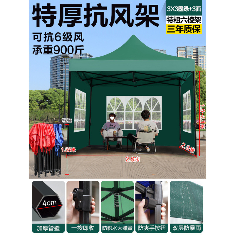 천막, 4각 차양, 4각 차양, 접이식 야간 간식 대형 우산, 야외 방수 및 방풍 텐트스토어 가기
