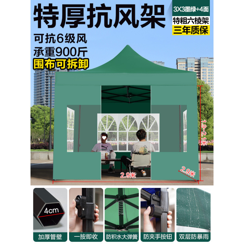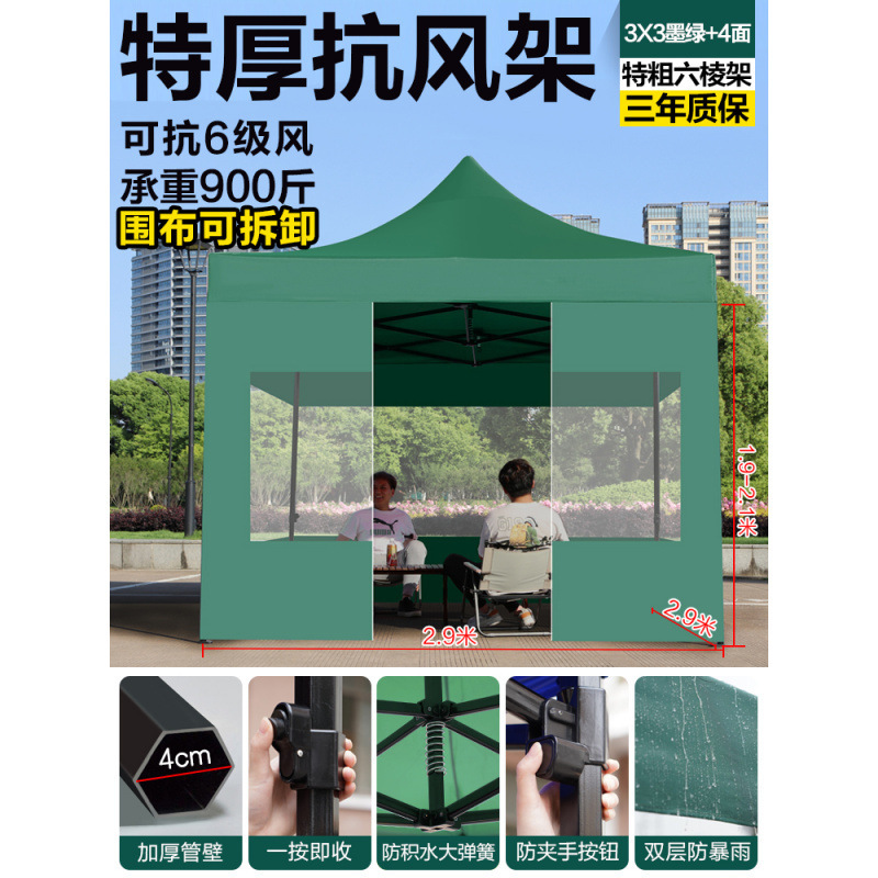 천막, 4각 차양, 4각 차양, 접이식 야간 간식 대형 우산, 야외 방수 및 방풍 텐트