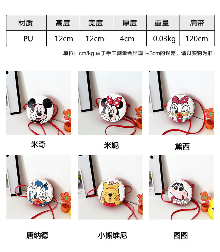 한국어 버전 어린이 가방 새로운 유행 어깨 작은 라운드 가방 만화 애니메이션 미니 아기 동전 지갑 소녀 크로스 바디 백