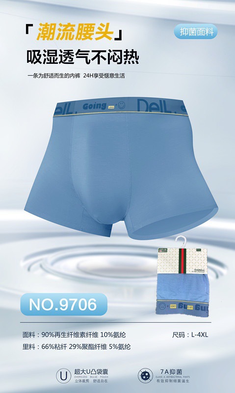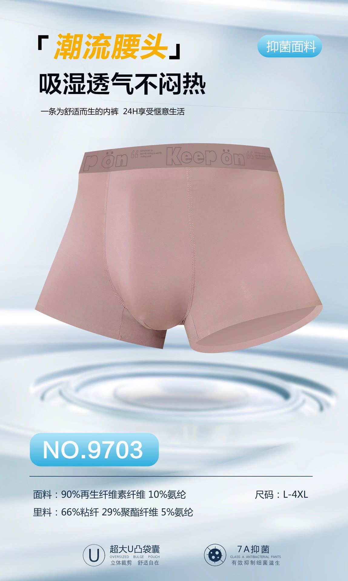 50수 남성 속옷, 심리스 미드웨이스트 통기성 사각팬티, 모달 레터벨트, 신형 사각팬티스토어 가기