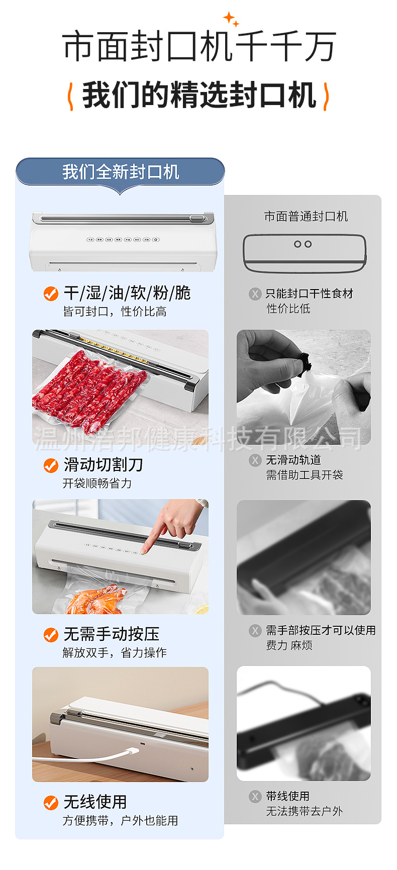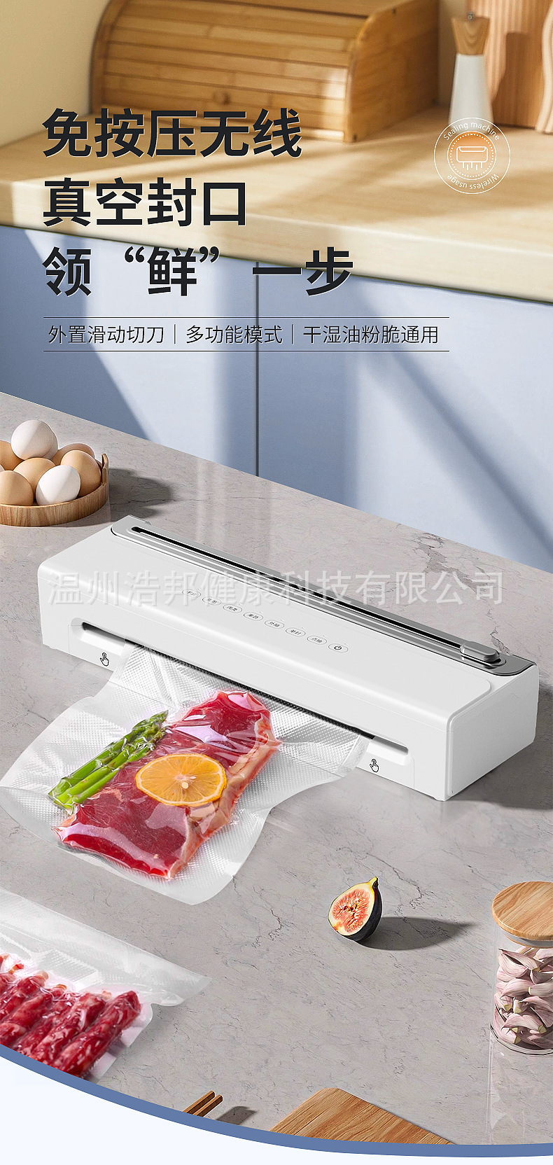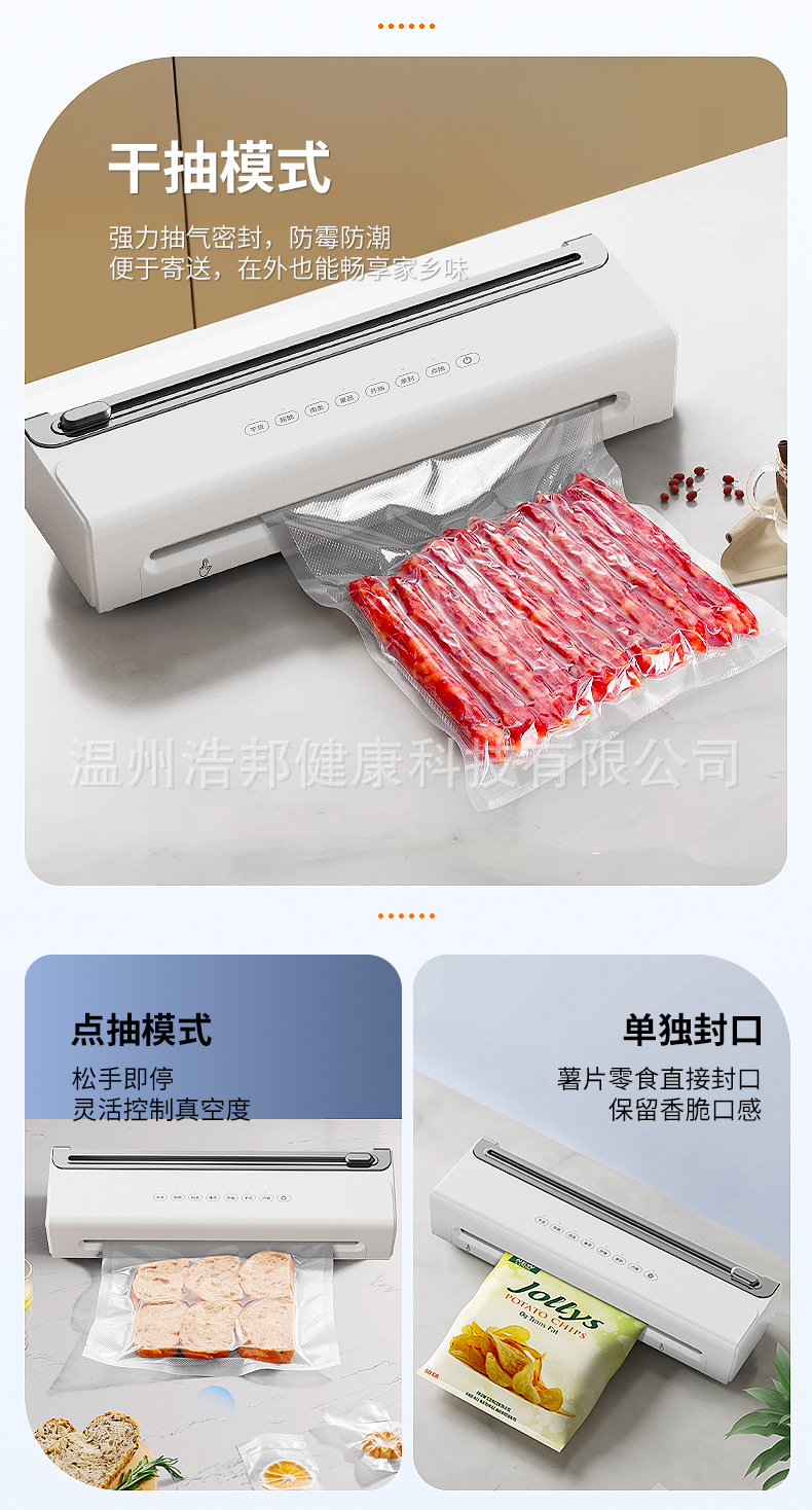 HB-520 프레스 프리 싱크 및 커터 포함 가정용 USB 무선 진공 밀봉 기계 외부 진공 보존
