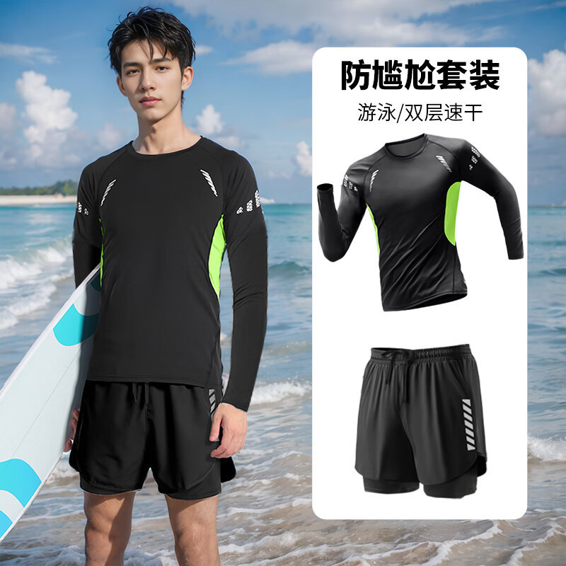 • 검정색과 녹색 긴 소매 + 검정색 수영 트렁크