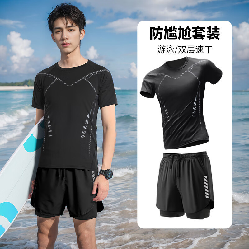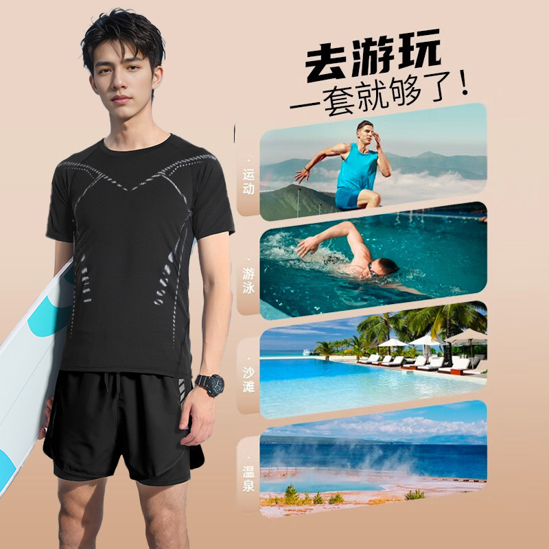 • 공상 과학 반팔 + 검은색 수영 트렁크