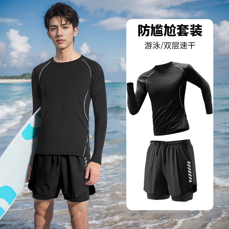 • 공상 과학 긴 소매 + 검은색 수영 트렁크