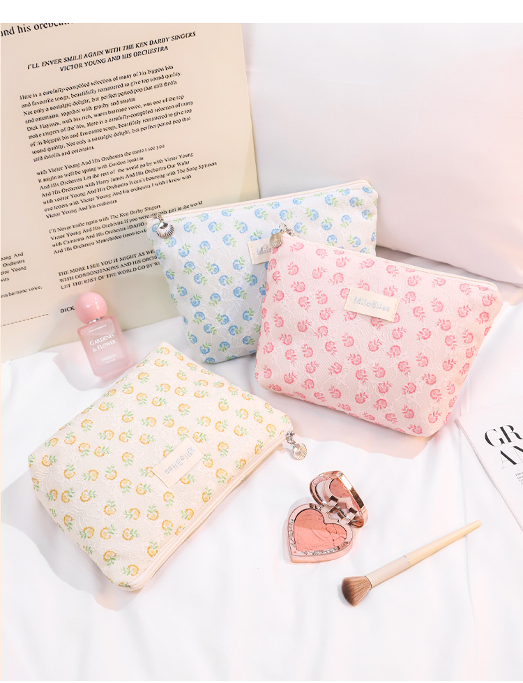 국경 간 새로운 작은 꽃 사각형 가방 화장품 가방 대용량 스킨 케어 제품 보관 가방 휴대용 미니 동전 지갑