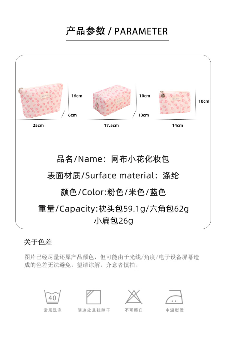 국경 간 새로운 작은 꽃 사각형 가방 화장품 가방 대용량 스킨 케어 제품 보관 가방 휴대용 미니 동전 지갑스토어 가기