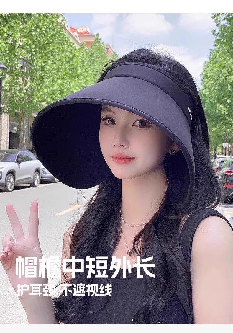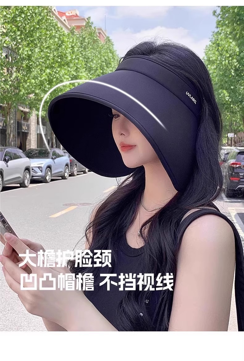 여름철 여성용 랩어라운드 풀페이스 자외선 차단 모자, 챙이 큰 빈 탑 선캡, 사이클링 자외선 차단 아이스 실크 선캡