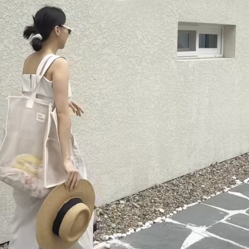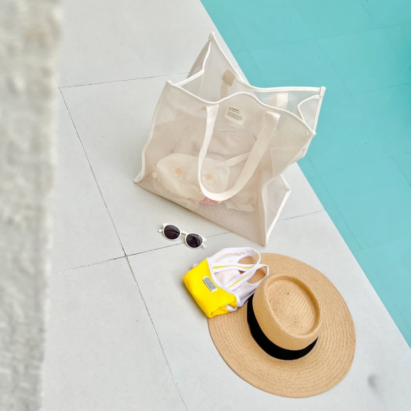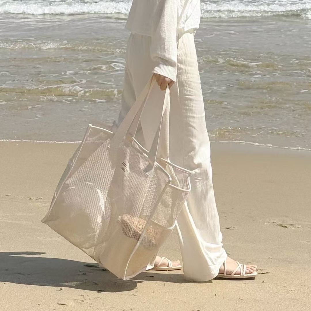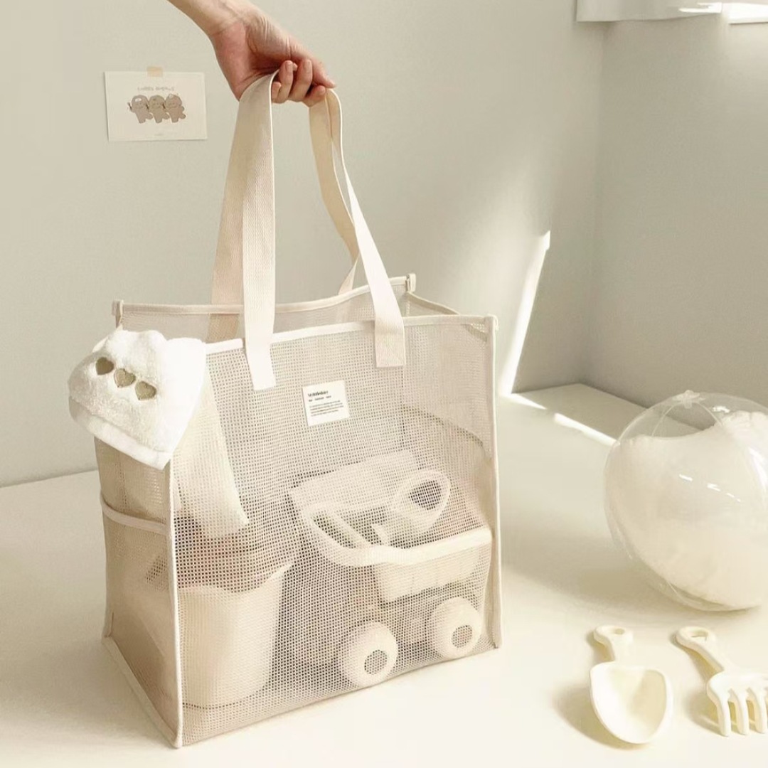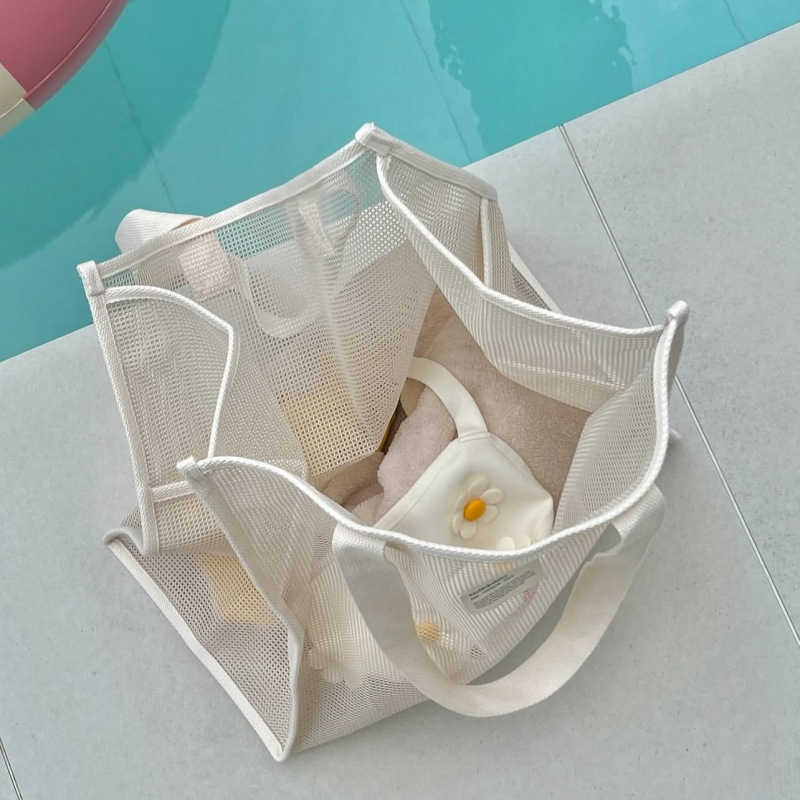 Ins 한국어 간단한 대용량 비치 가방 여름 메쉬 피트니스 수영 장비 보관 가방 워시 핸드백스토어 가기
