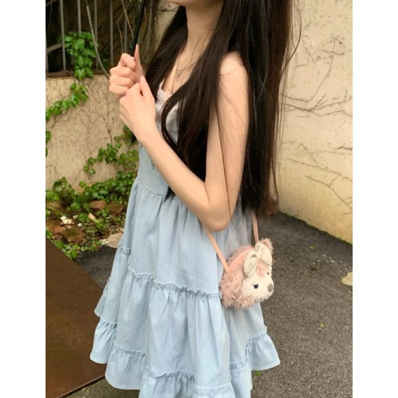 포레스트 스타일 달콤한 연령 감소 서스펜더 드레스 바닥 섹시한 조끼 여성 여름 투피스 스커트 투피스 슈트