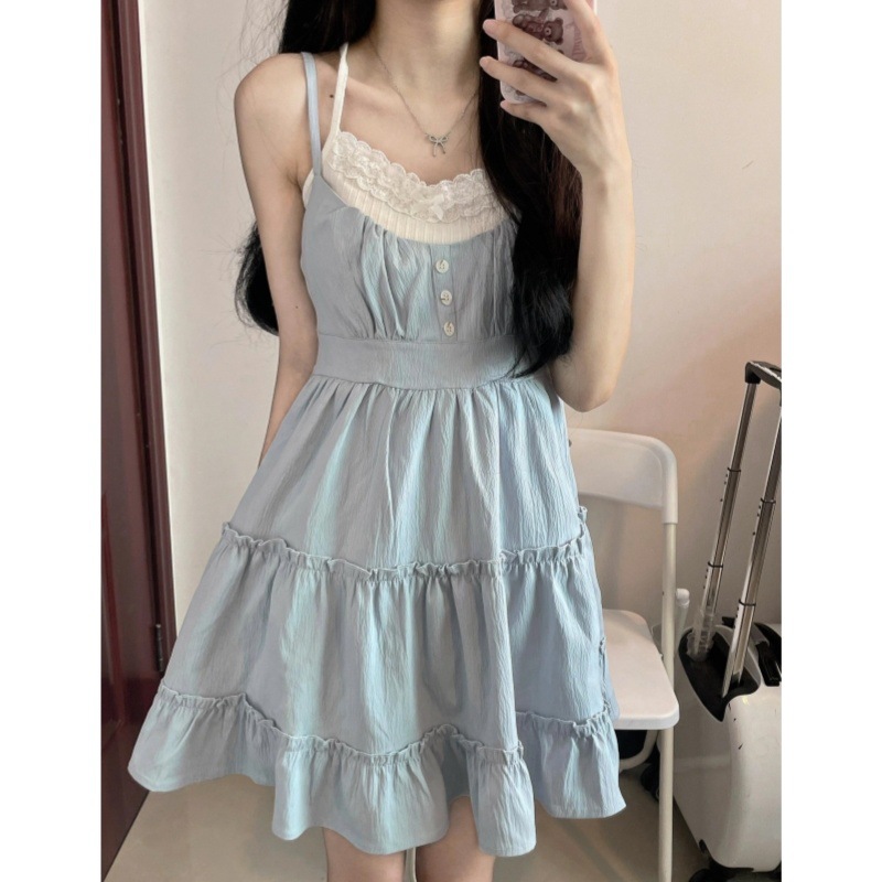 포레스트 스타일 달콤한 연령 감소 서스펜더 드레스 바닥 섹시한 조끼 여성 여름 투피스 스커트 투피스 슈트스토어 가기