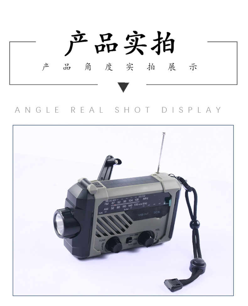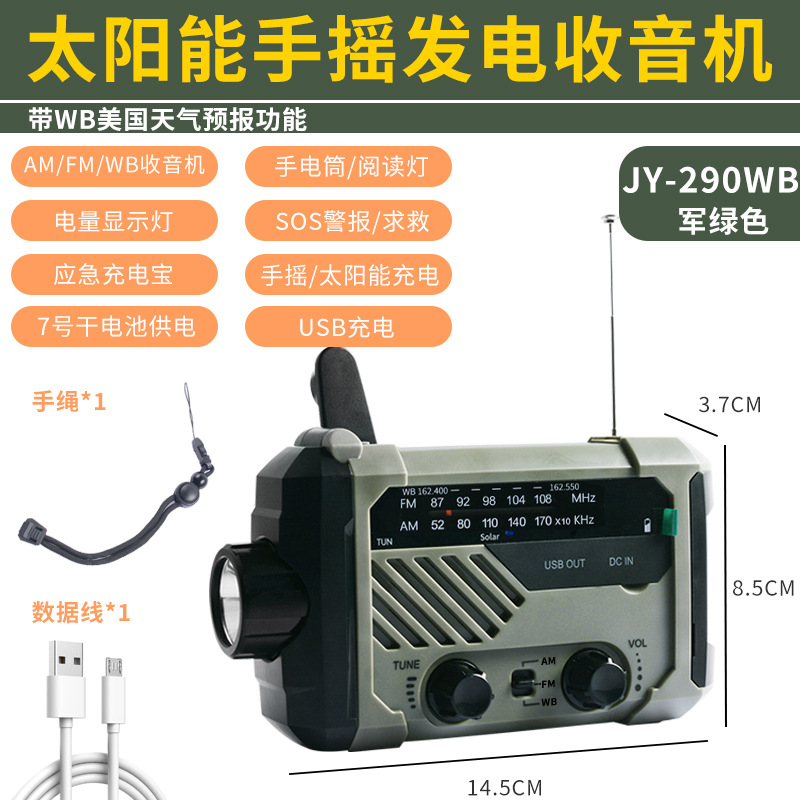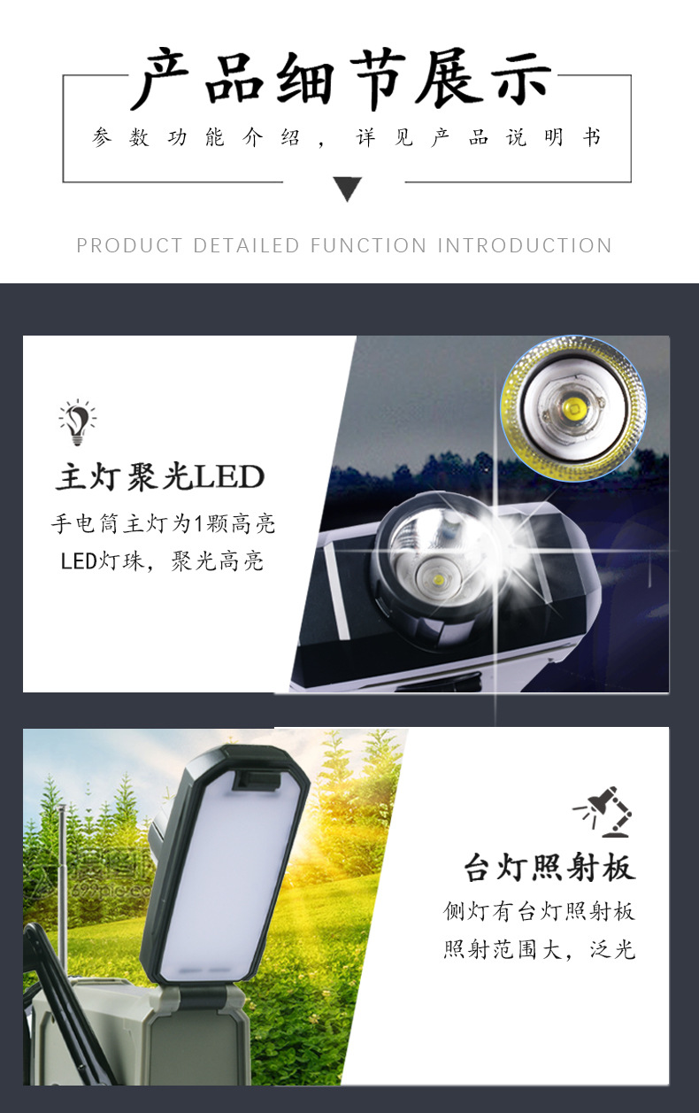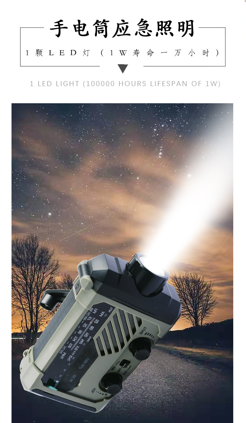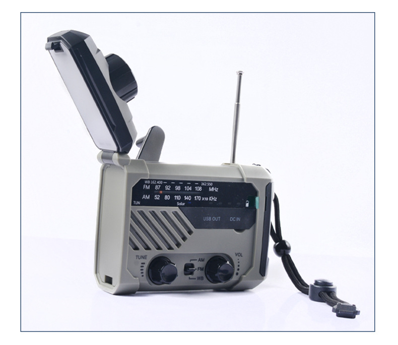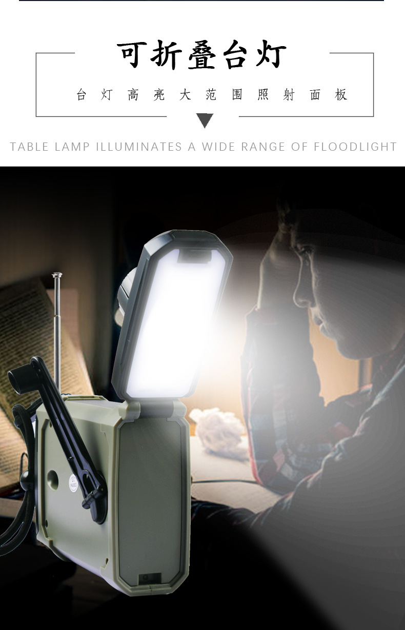 다기능 비상 장비 수동식 자체 발전 라디오 태양열 USB 전원 은행 손전등 테이블 램프