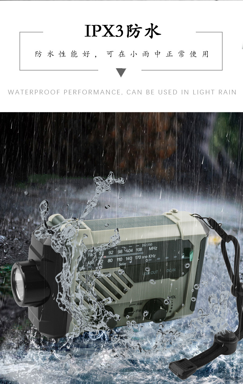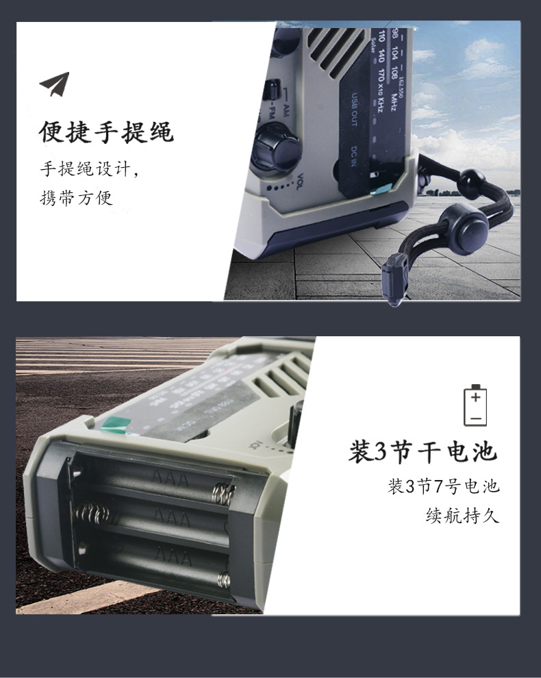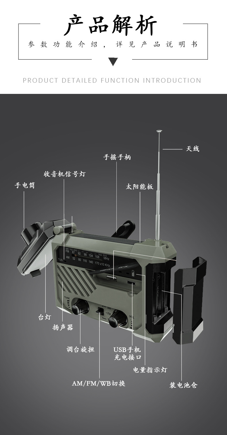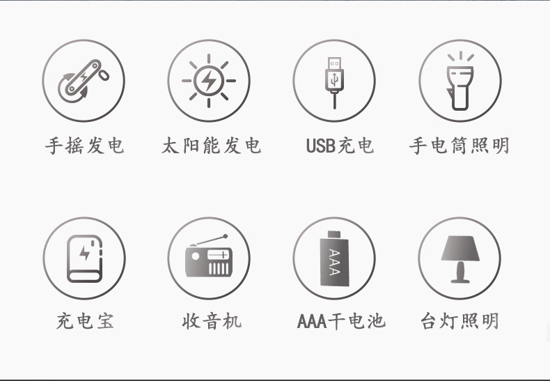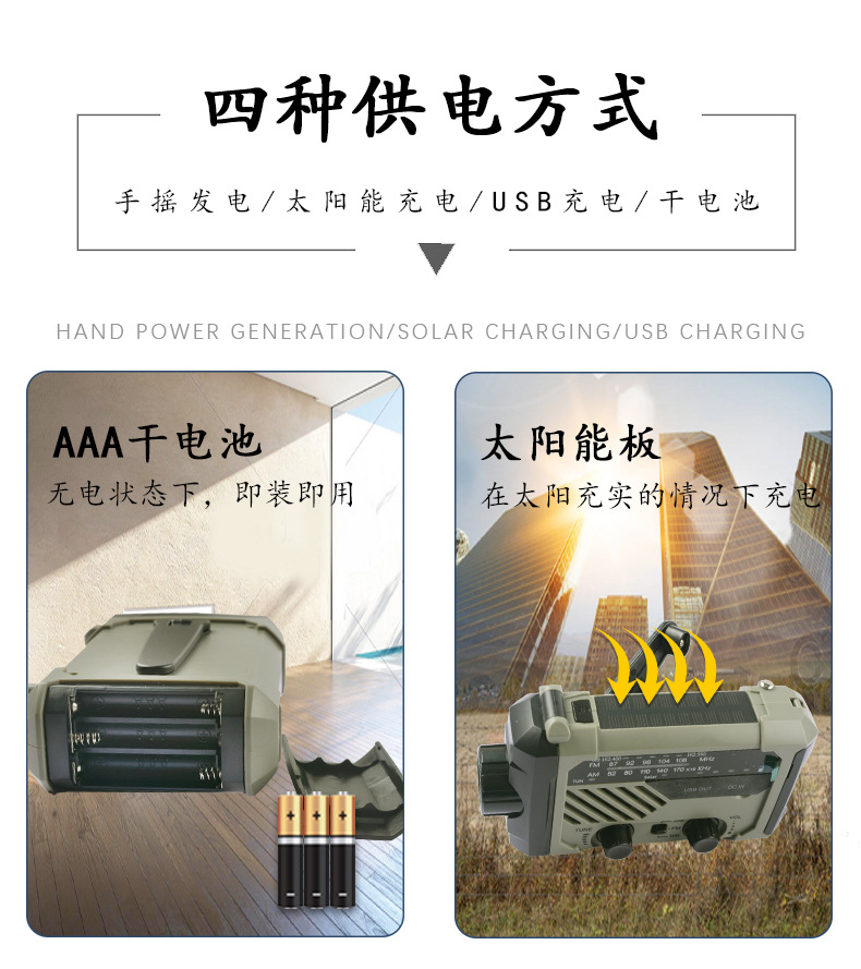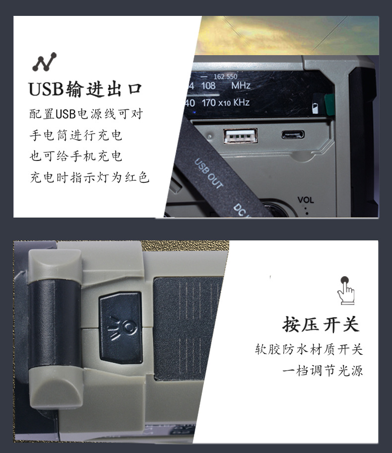다기능 비상 장비 수동식 자체 발전 라디오 태양열 USB 전원 은행 손전등 테이블 램프