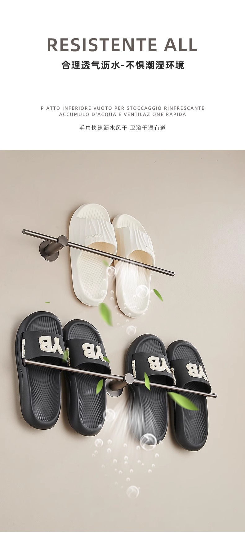 욕실 슬리퍼 랙, 펀치 없는 304 스테인레스 스틸 욕실 화장실 걸이 슬리퍼 배수 랙 보관 유물스토어 가기