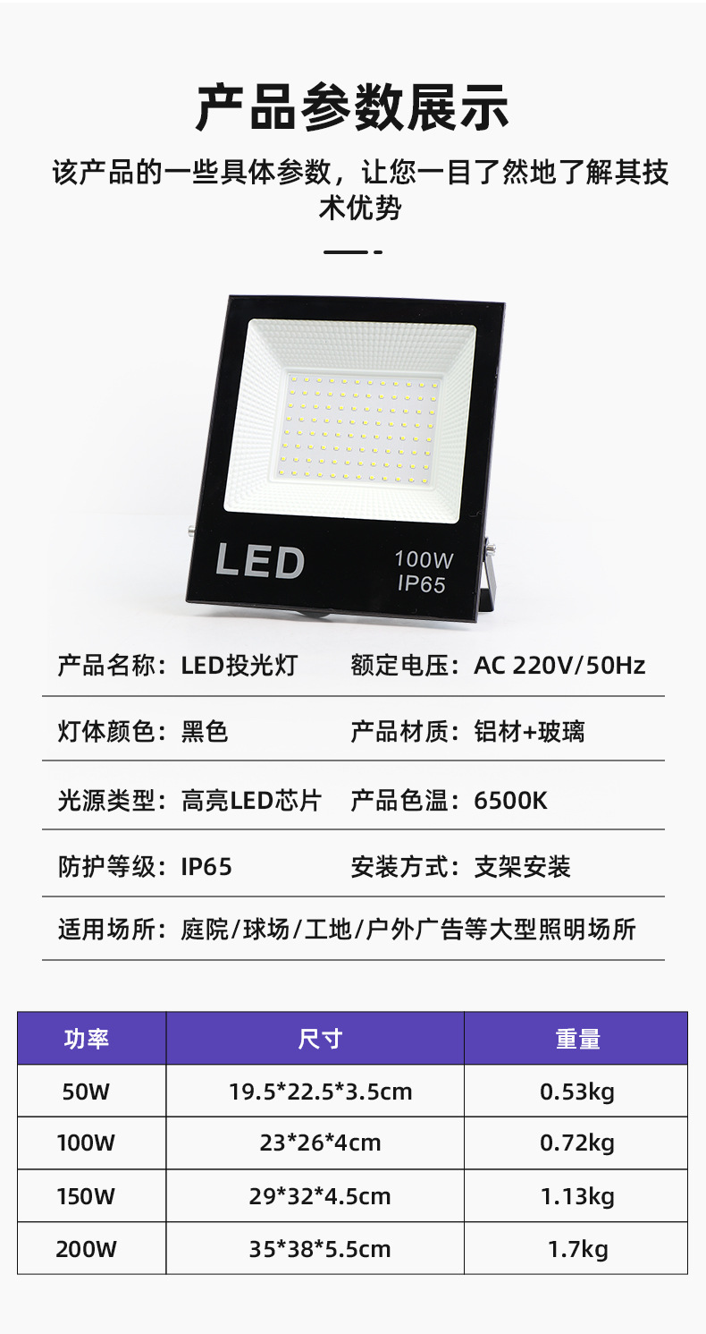 LED 투광 조명 스포트라이트 야외 방수 강한 빛 슈퍼 밝은 건설 현장 공장 빔 야외 조명