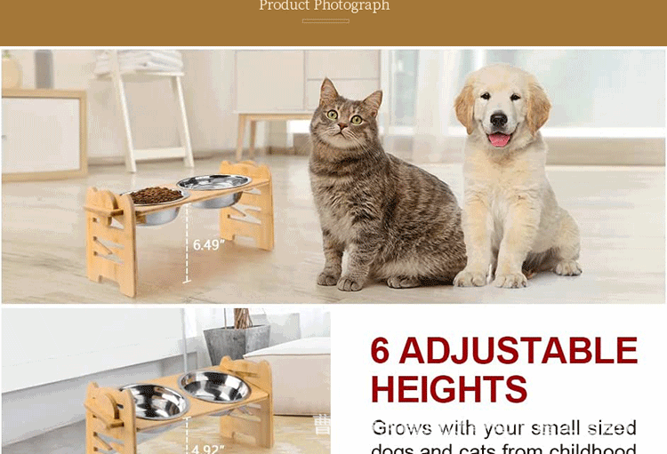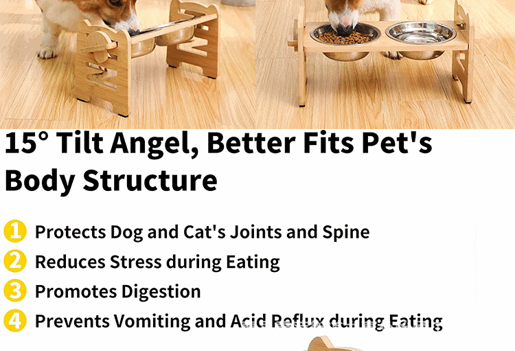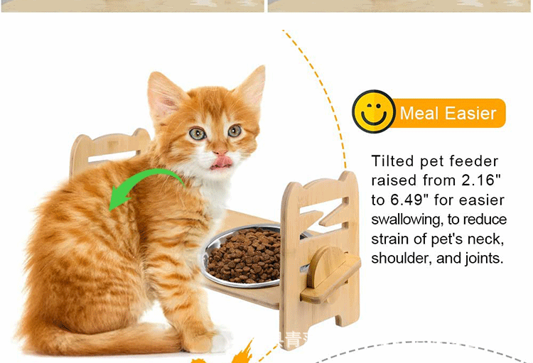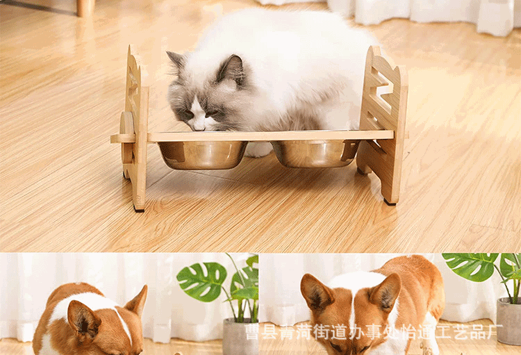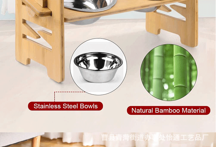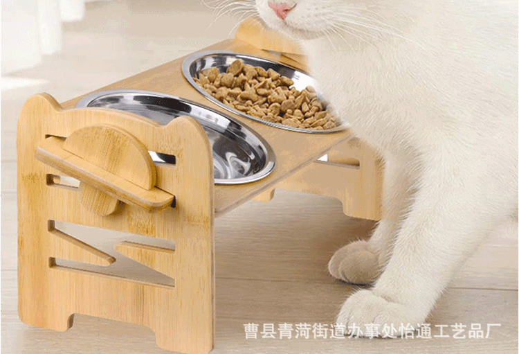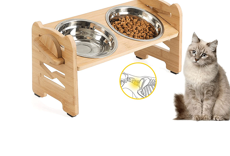 고양이 밥그릇 거치대, 대나무 애완견 사료 이중 그릇 스탠드, 급식대, 애완동물 그릇, 스테인리스 식기대, 고양이용스토어 가기