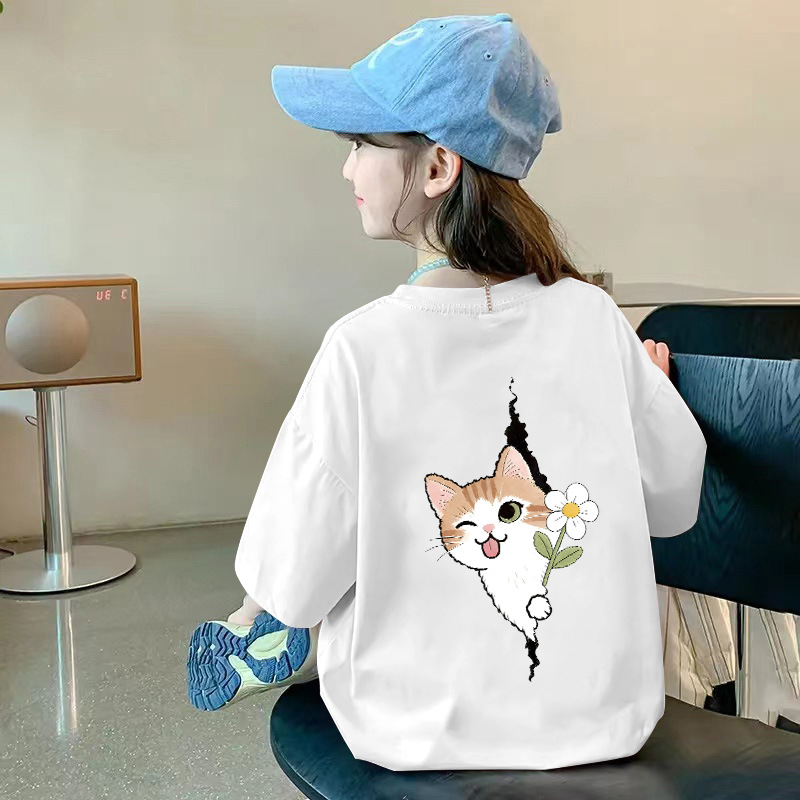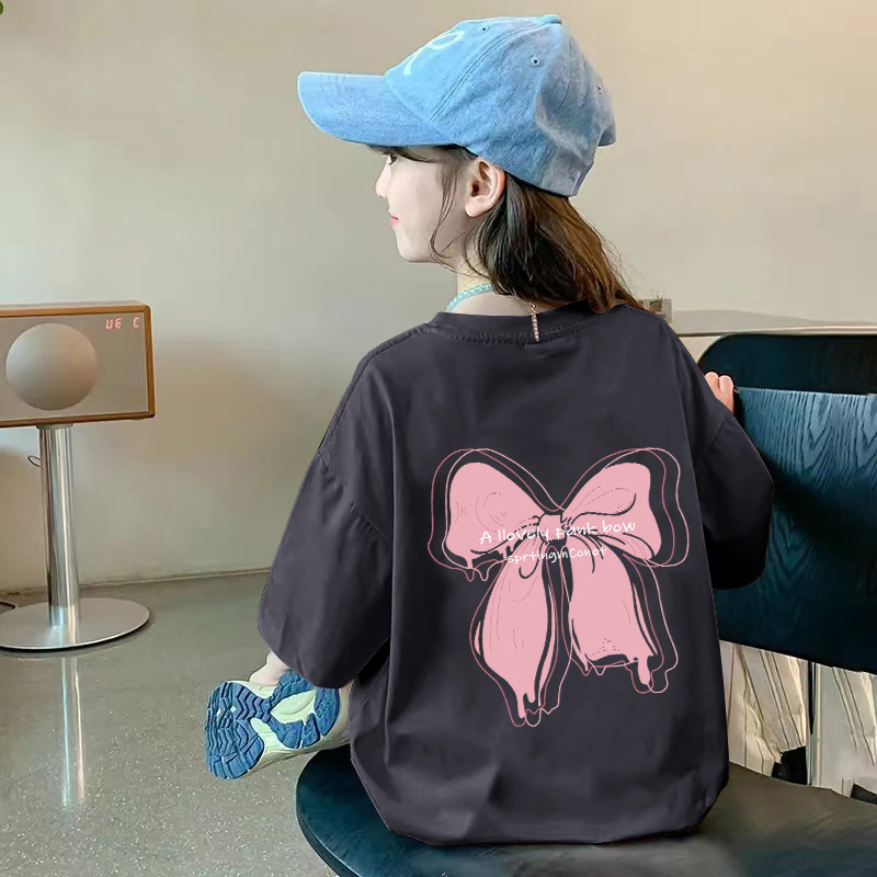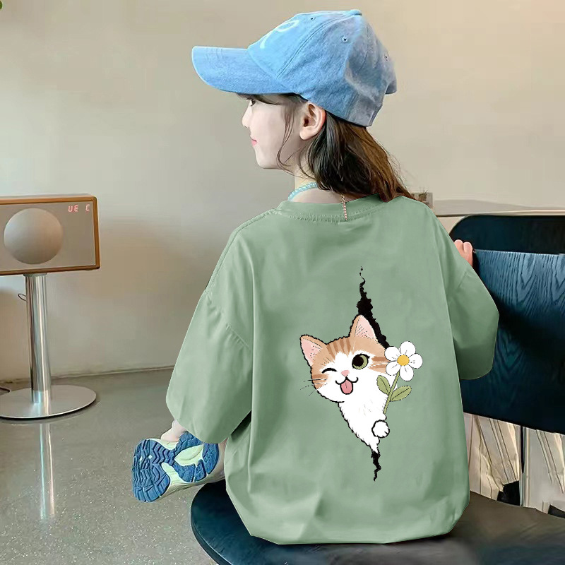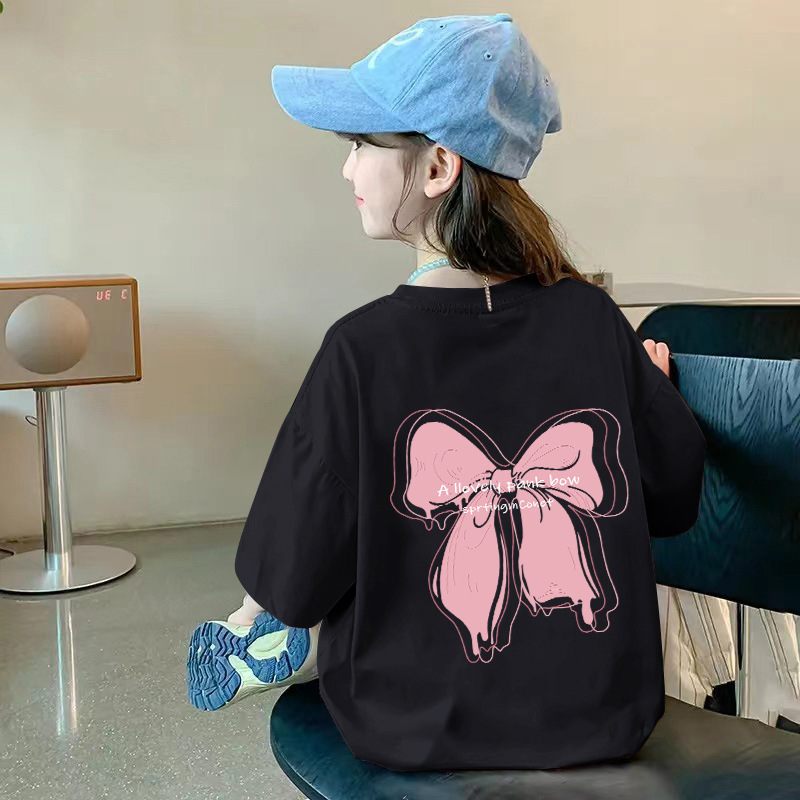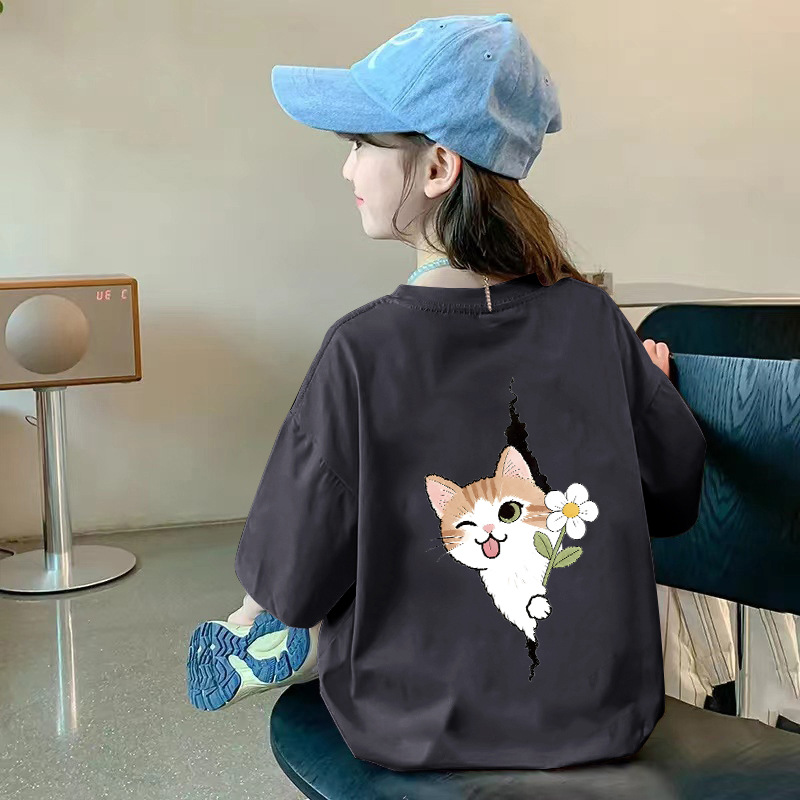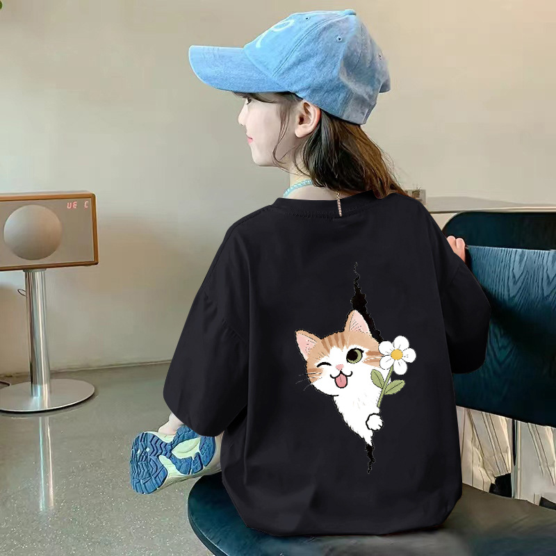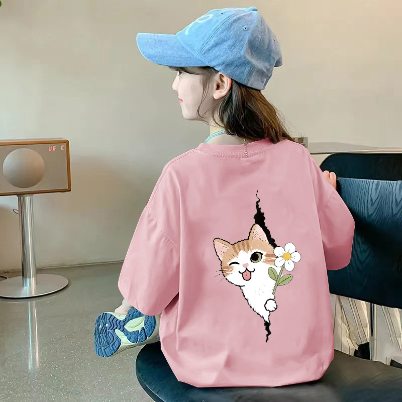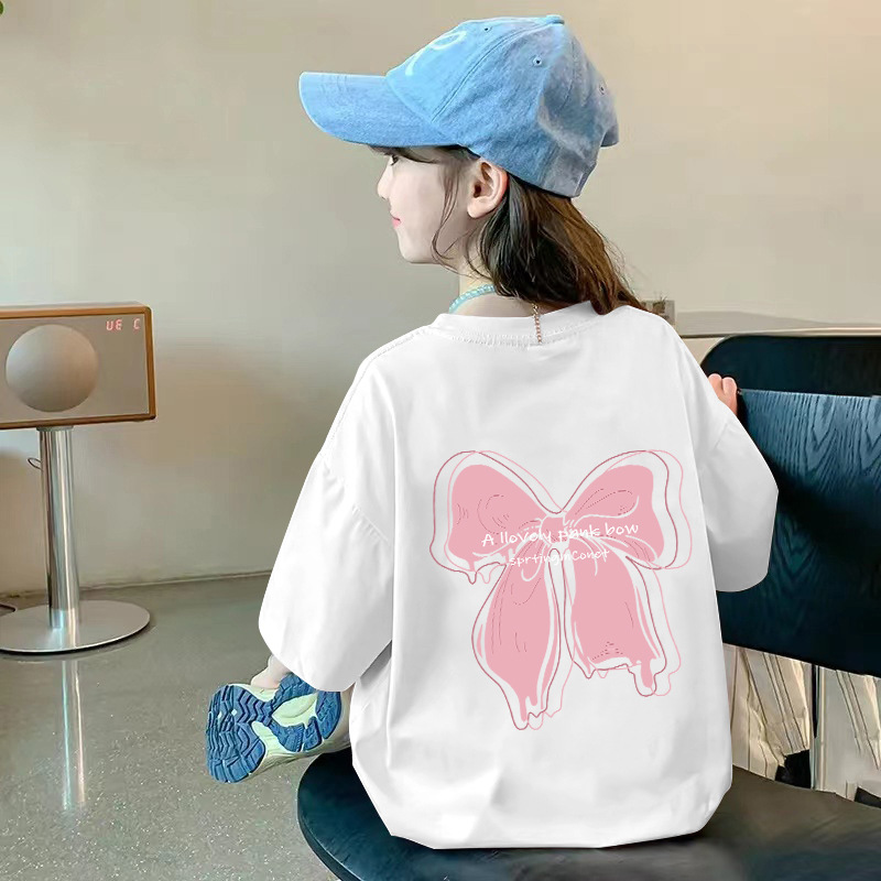 여아용 반팔 순면 티셔츠 라운드 넥 프린트 중대형 아동용 탑 여름 신작 아동용 티셔츠 여성용 루즈하고 트렌디함