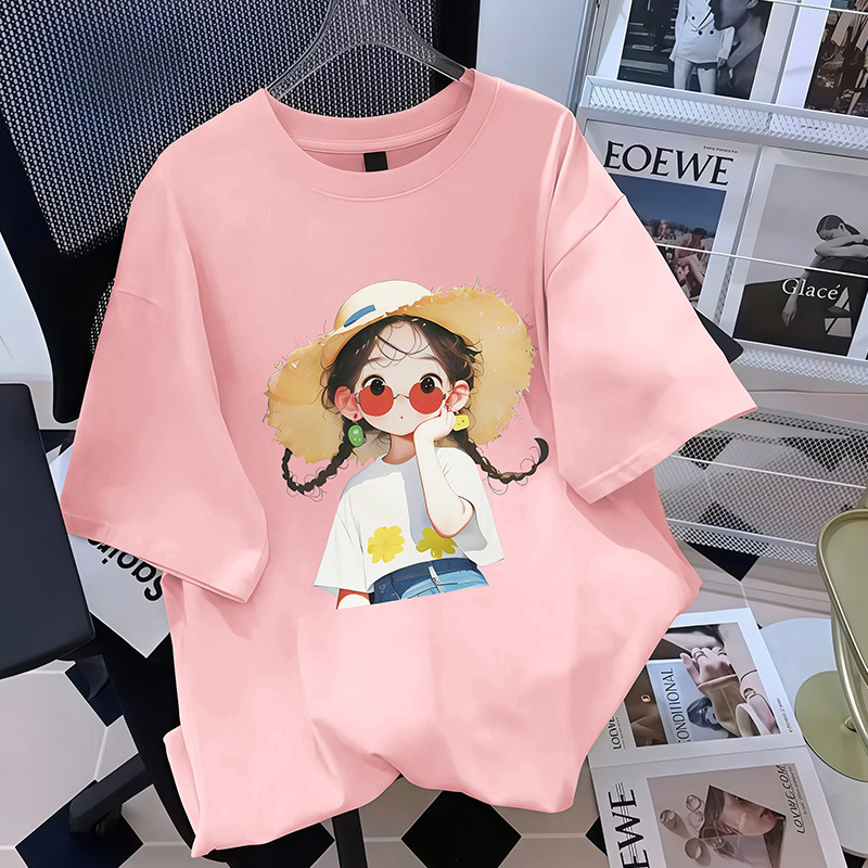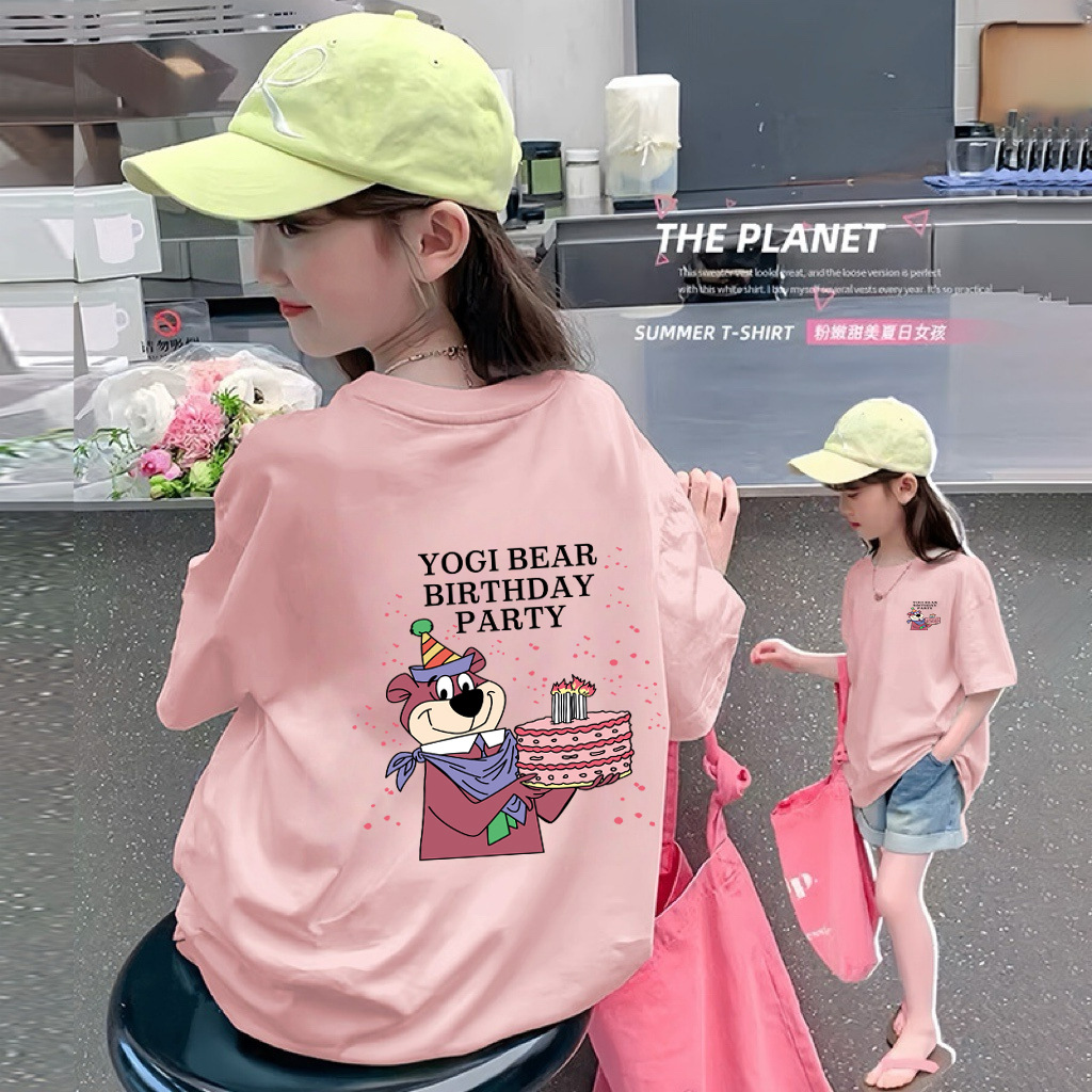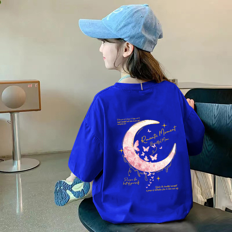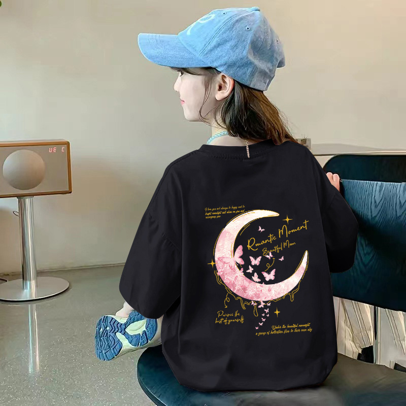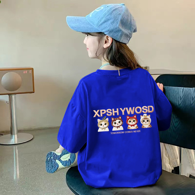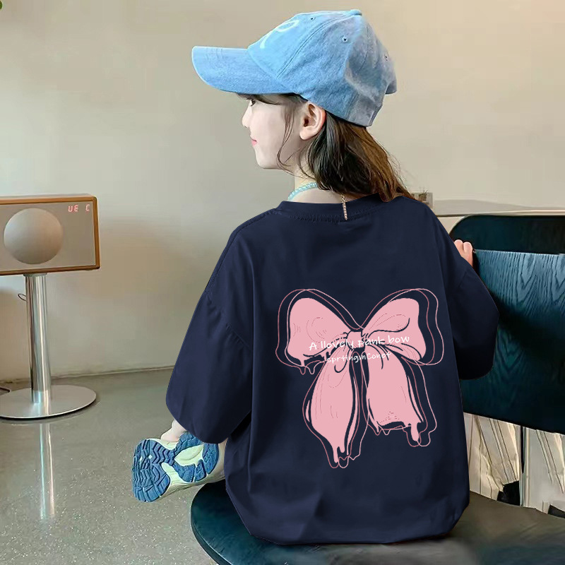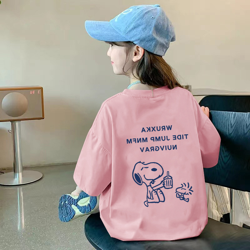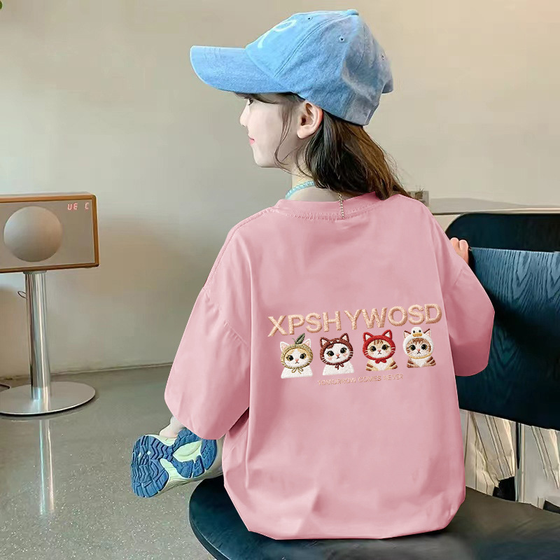 여아용 반팔 순면 티셔츠 라운드 넥 프린트 중대형 아동용 탑 여름 신작 아동용 티셔츠 여성용 루즈하고 트렌디함