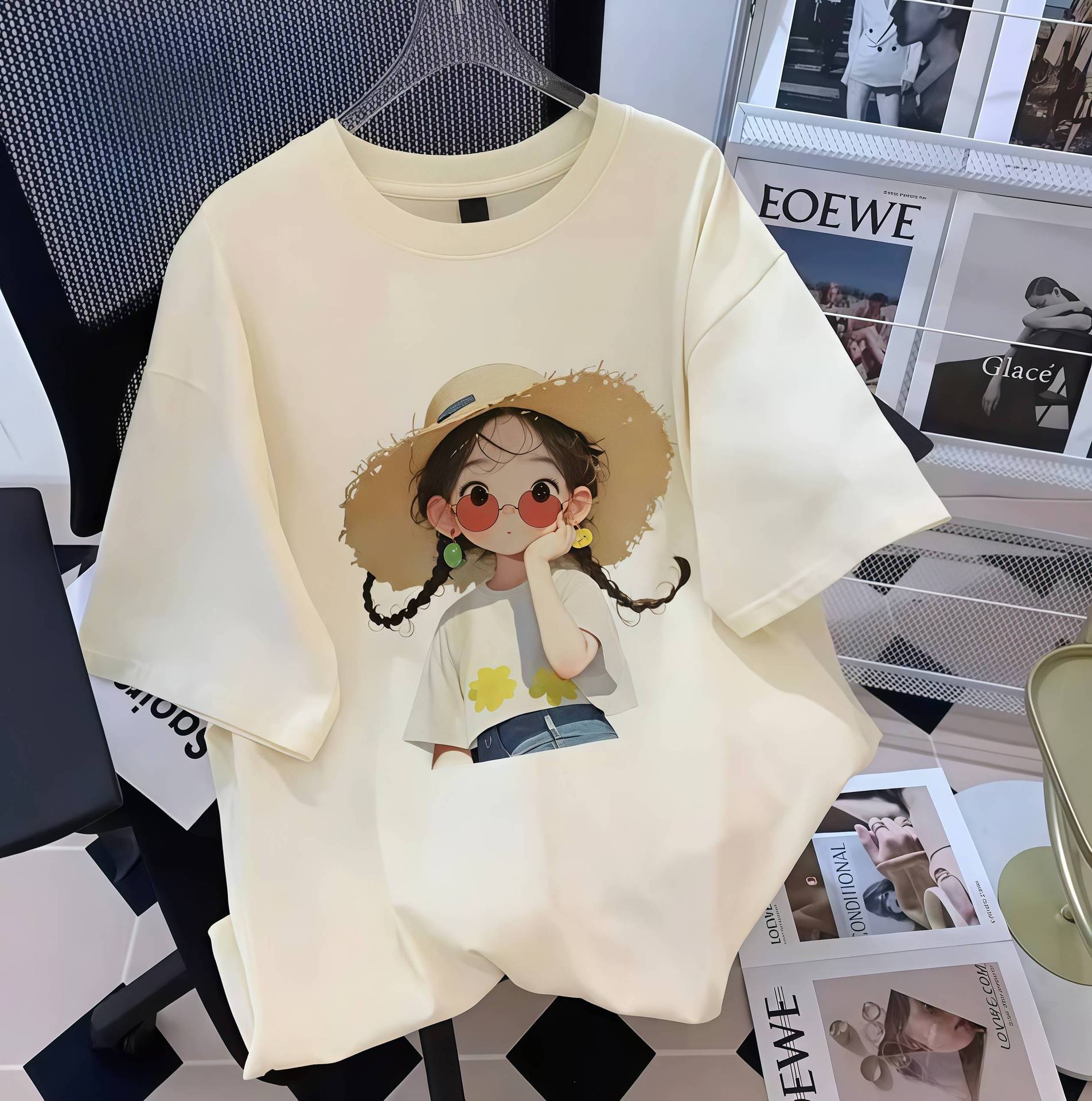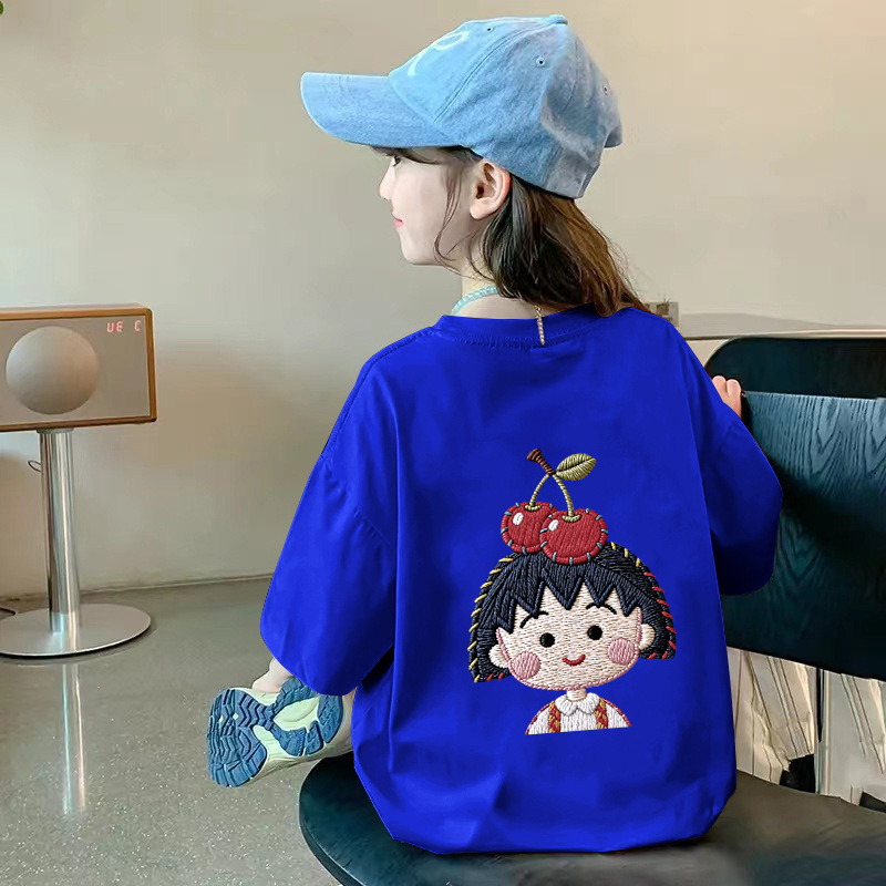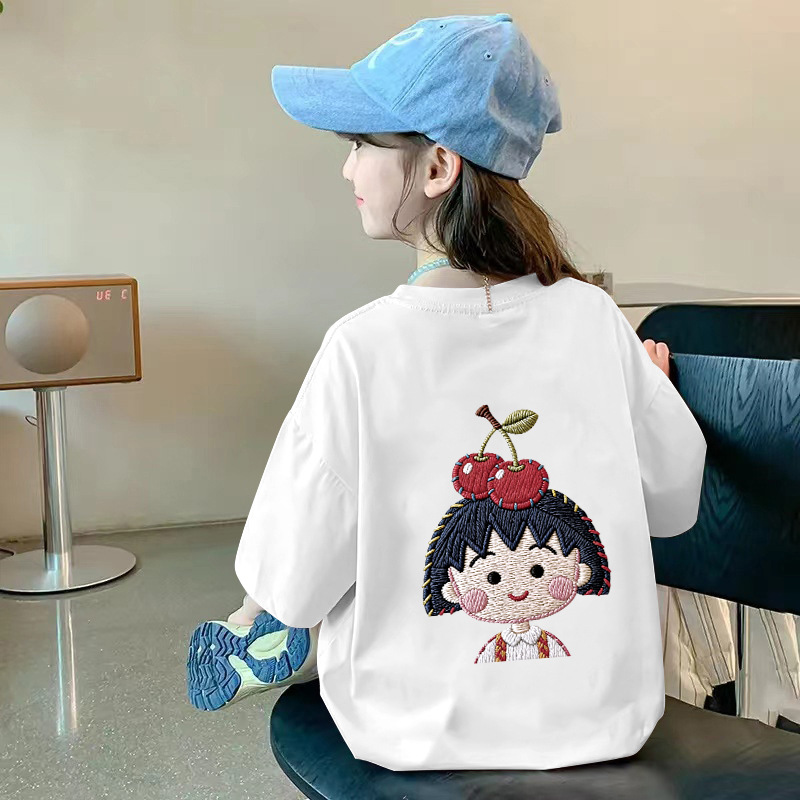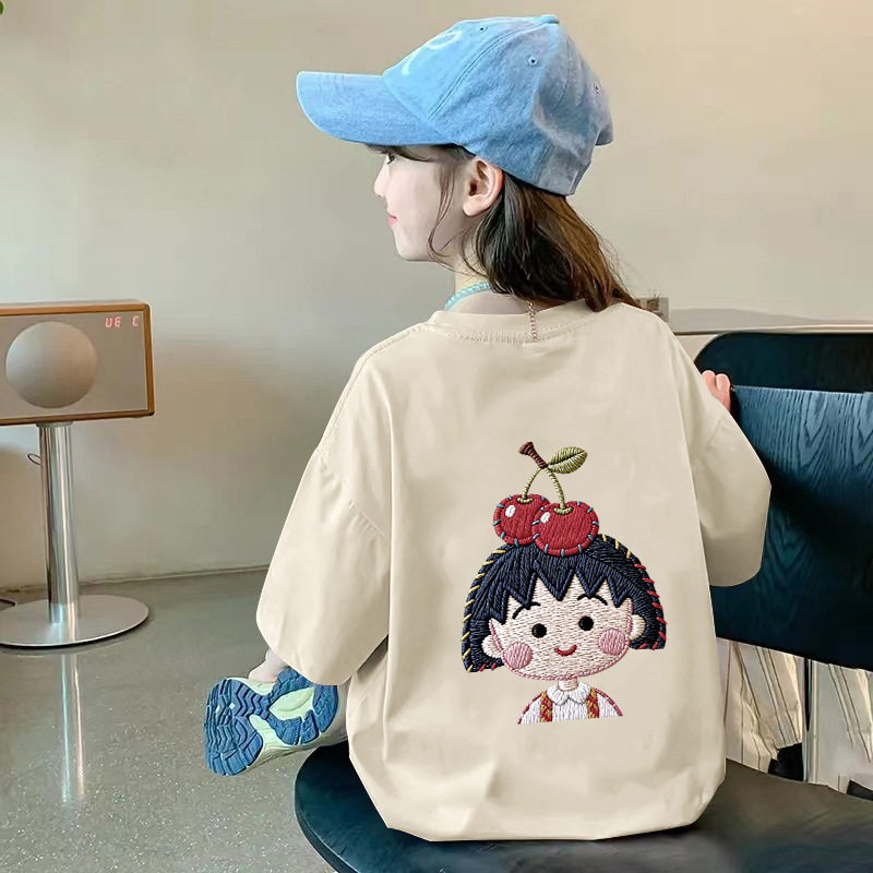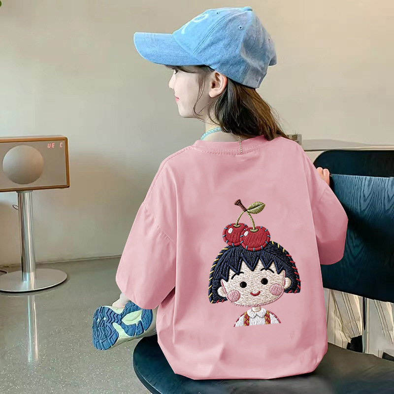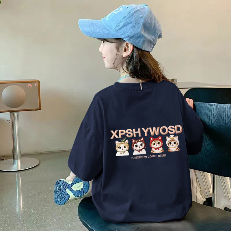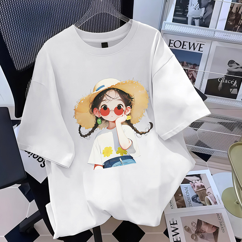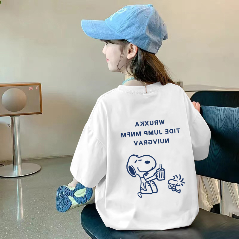 여아용 반팔 순면 티셔츠 라운드 넥 프린트 중대형 아동용 탑 여름 신작 아동용 티셔츠 여성용 루즈하고 트렌디함
