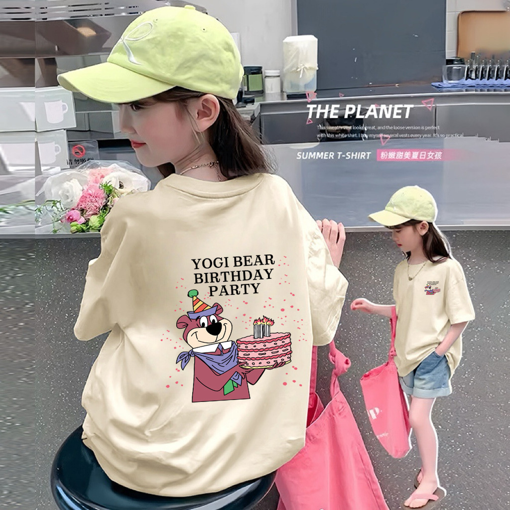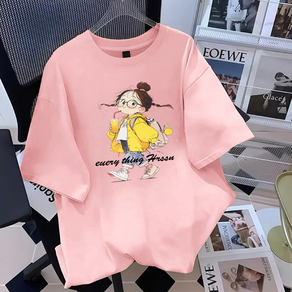 여아용 반팔 순면 티셔츠 라운드 넥 프린트 중대형 아동용 탑 여름 신작 아동용 티셔츠 여성용 루즈하고 트렌디함스토어 가기