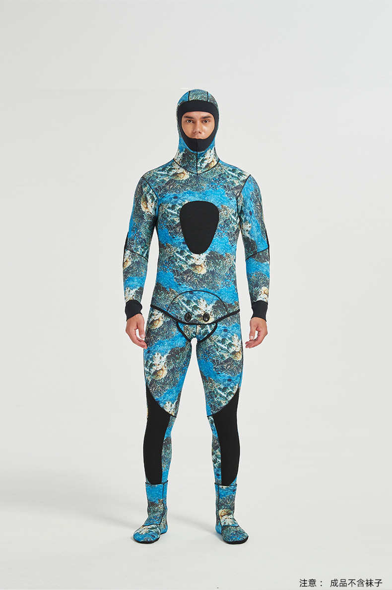 3mm 위장 무늬 낚시용 민소매 점프수트 후드 탑 수영 낚시 보온 웨트수트 위장 잠수복스토어 가기