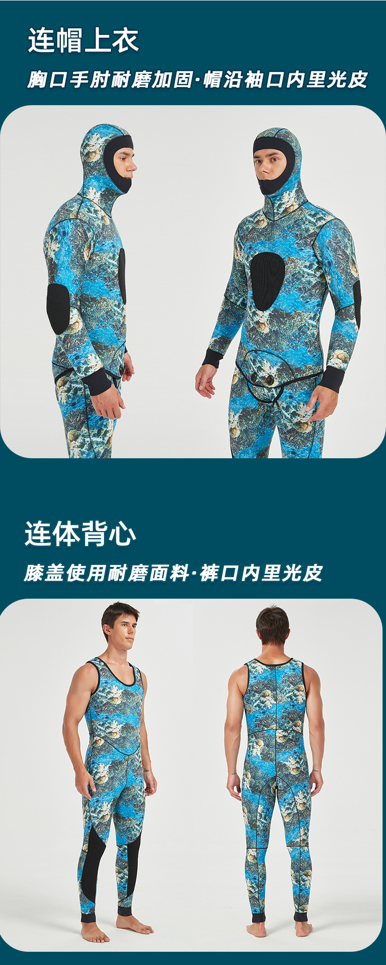 3mm 위장 무늬 낚시용 민소매 점프수트 후드 탑 수영 낚시 보온 웨트수트 위장 잠수복