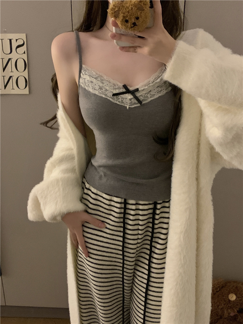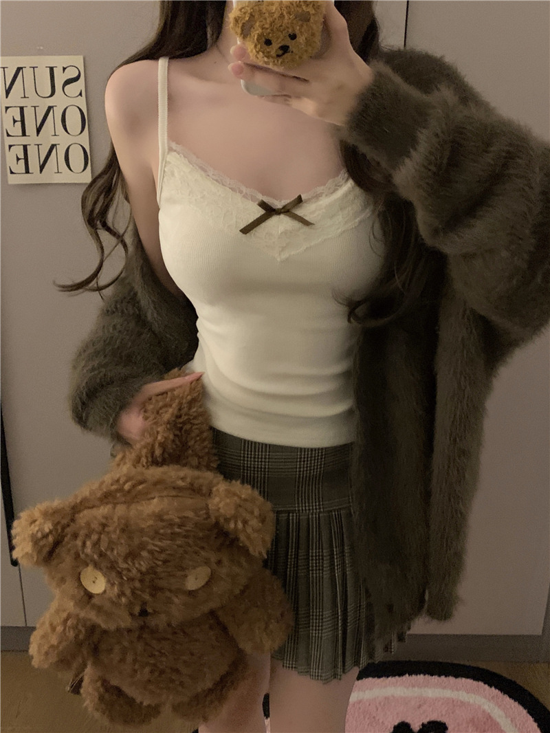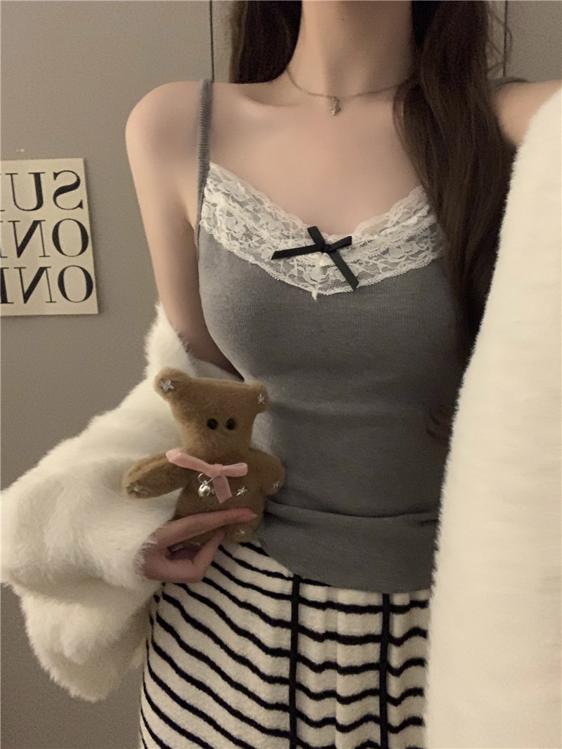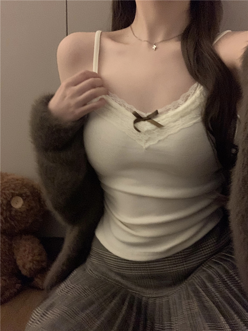 레이스 캐미솔 봄 여름 신상품 가슴 패드 일체형 순수한 욕망 핫걸 슬리밍 이너웨어 여성용 아우터 탑스토어 가기