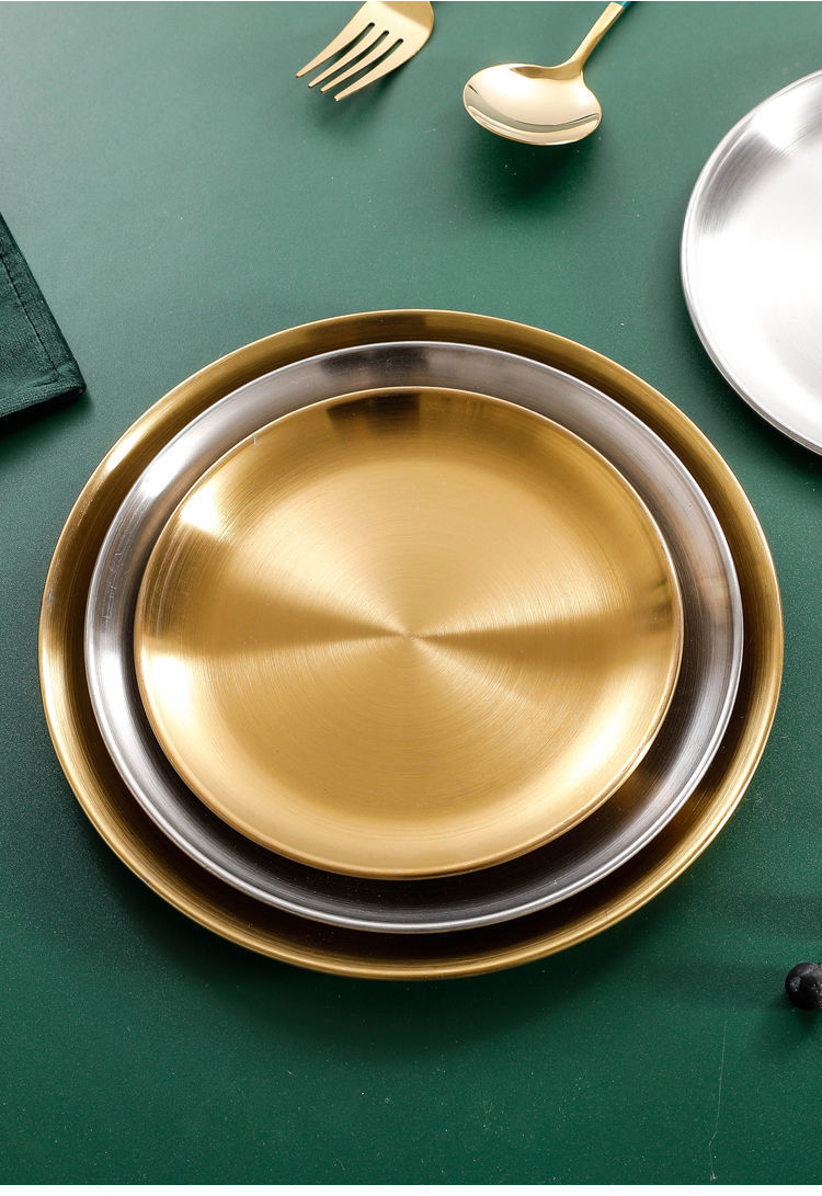 304 스테인레스 스틸 한국식 바베큐 접시 서양 음식 접시 뼈 접시 장식품 황금 원형 접시 트레이 원형 접시 도매