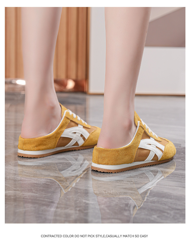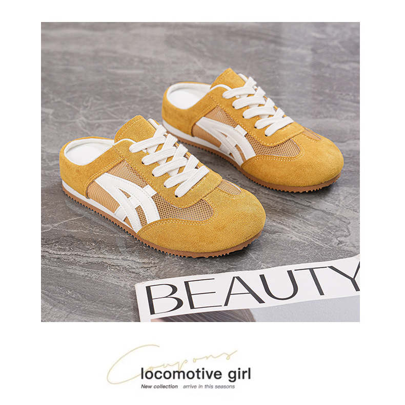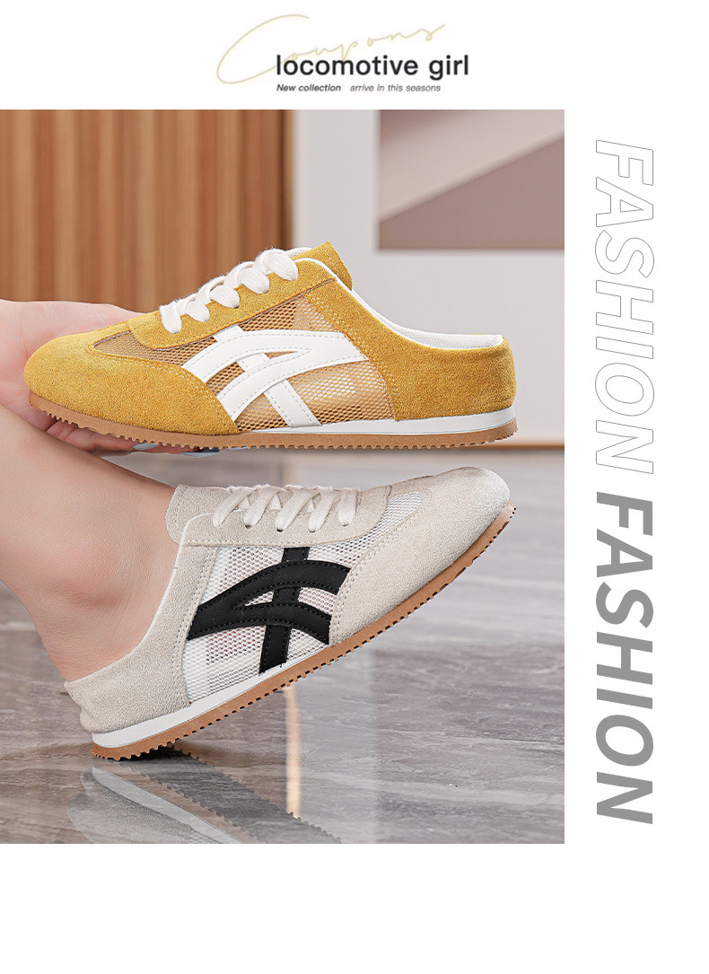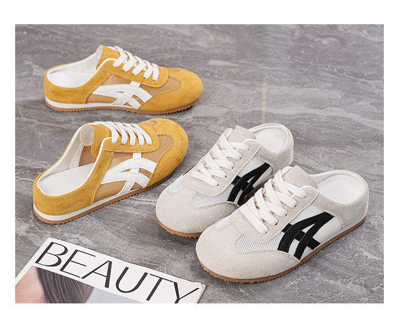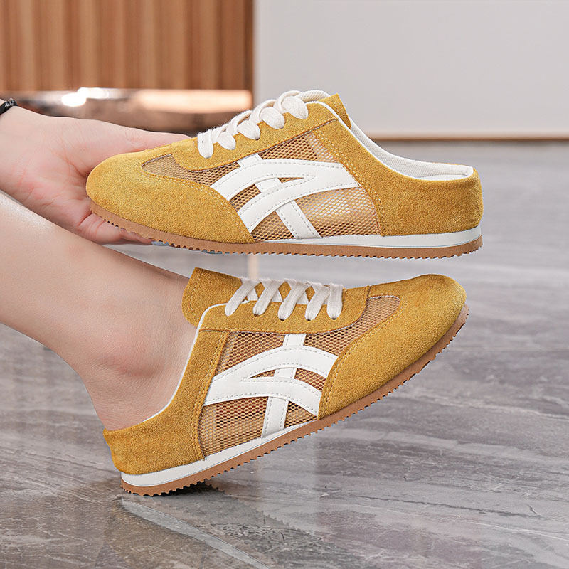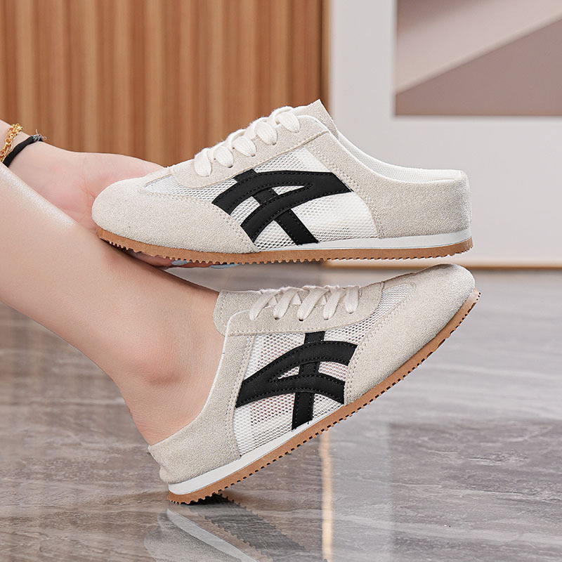 여성을위한 인기있는 Baotou 반 슬리퍼 2025 여름 새로운 한국어 버전 컬러 매칭 메쉬 힐없는 가볍고 편안한 신발 CY905