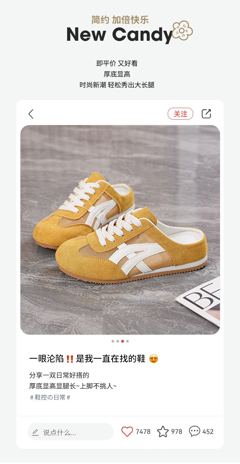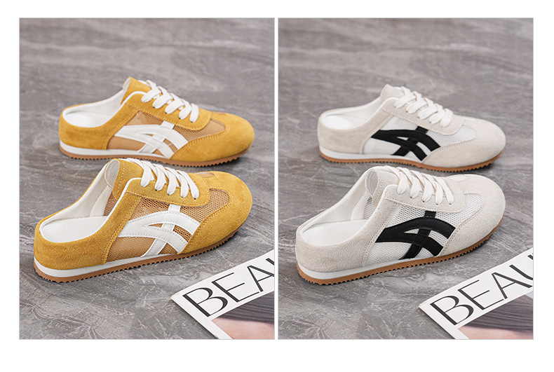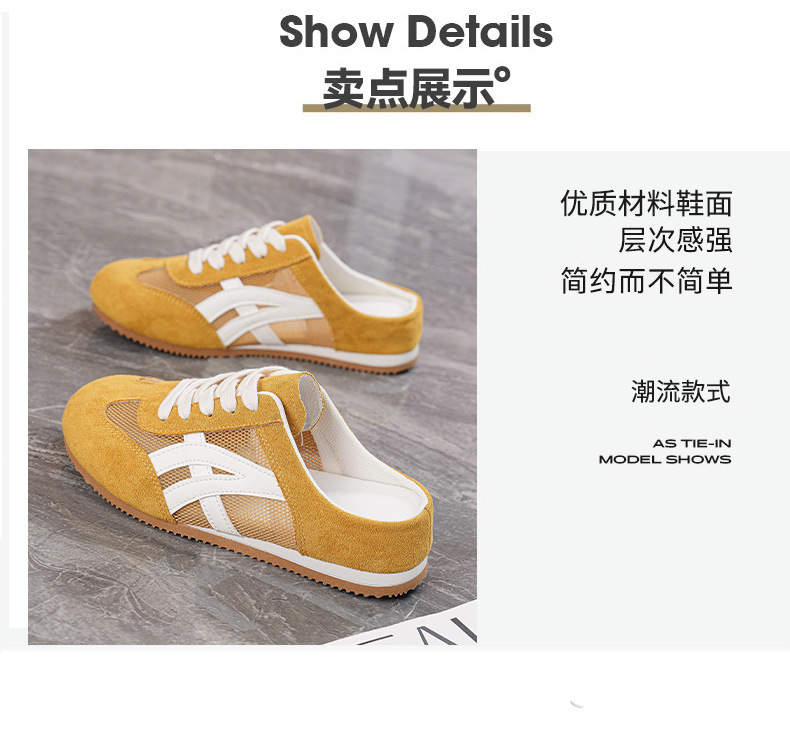 여성을위한 인기있는 Baotou 반 슬리퍼 2025 여름 새로운 한국어 버전 컬러 매칭 메쉬 힐없는 가볍고 편안한 신발 CY905스토어 가기
