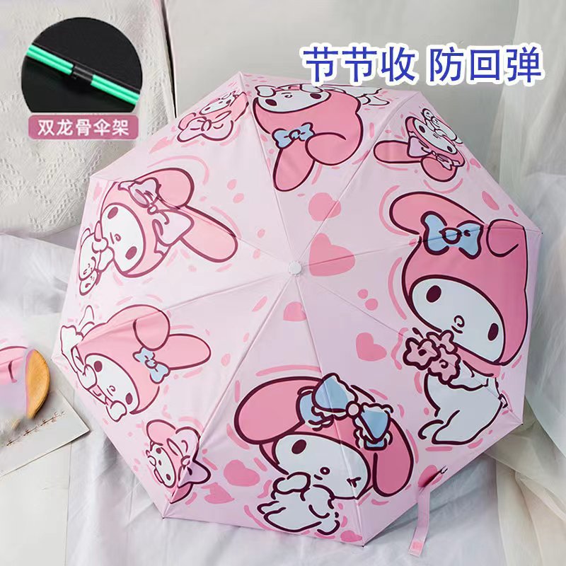 新款卡通印花色KT猫雨伞黑胶防晒防紫外线全自动学生安全节节收伞超值价:¥8.8