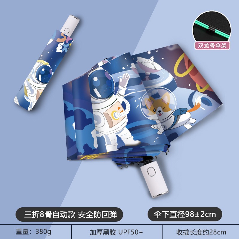 全自动晴雨两用伞宇航员太空人防晒紫外线黑胶三折叠广告定logo制超值价:¥9.9