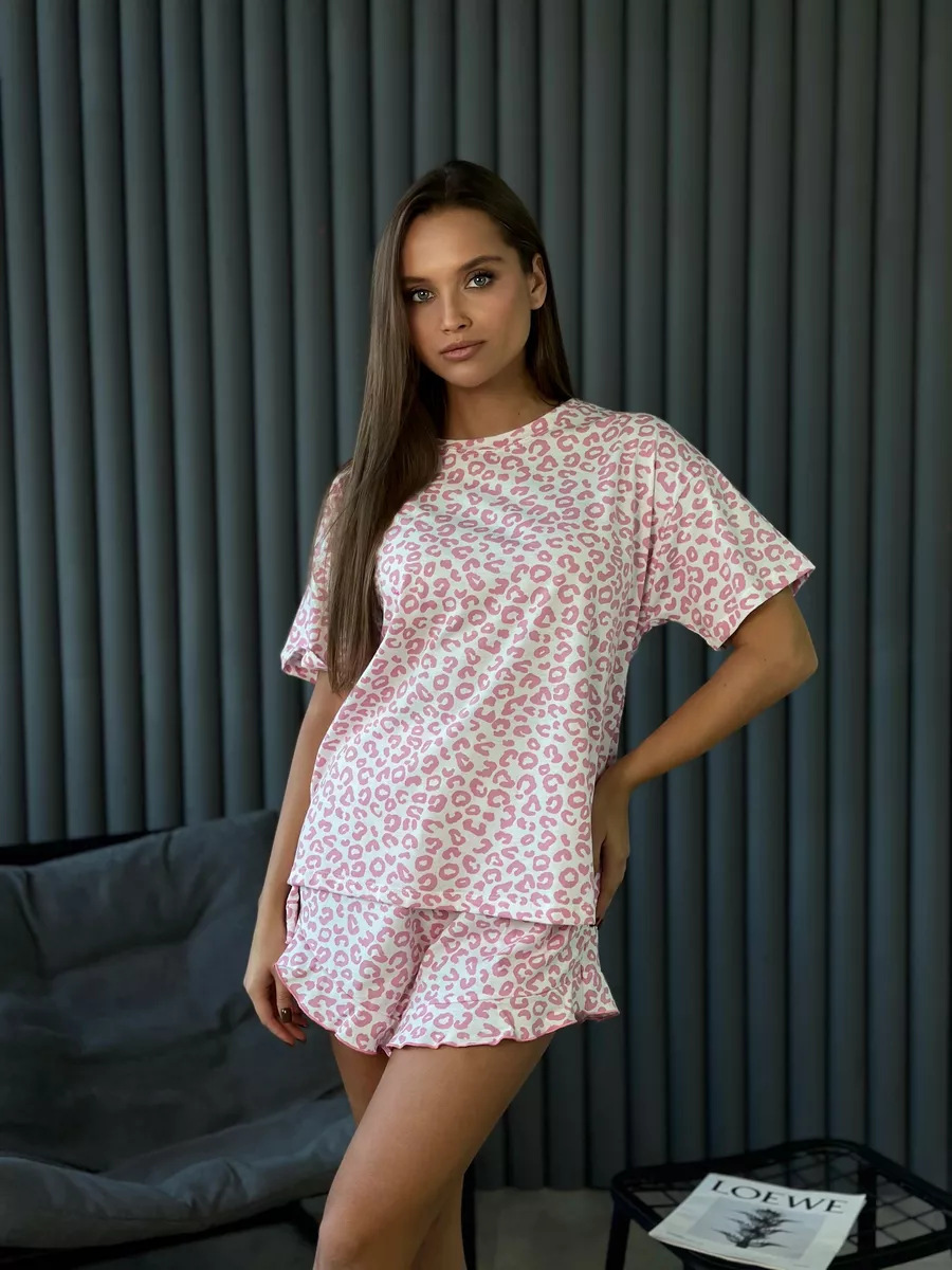 Женская пижама 여성 잠옷 국경을 넘나드는 러시아 인기 프린트 레오파드 프린트스토어 가기