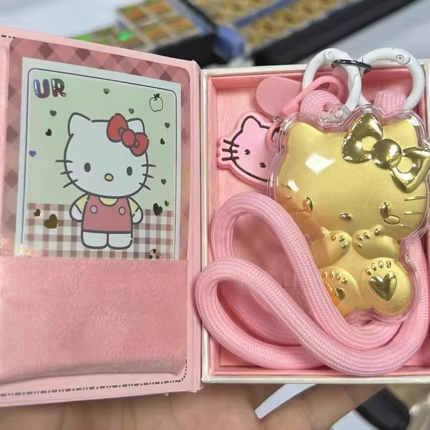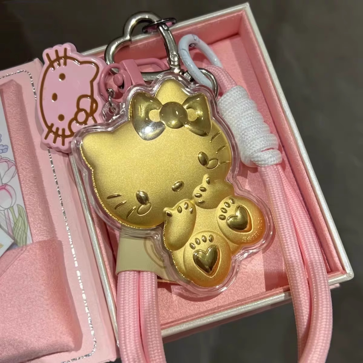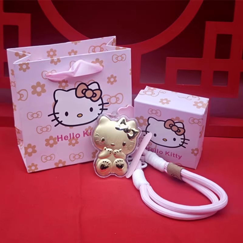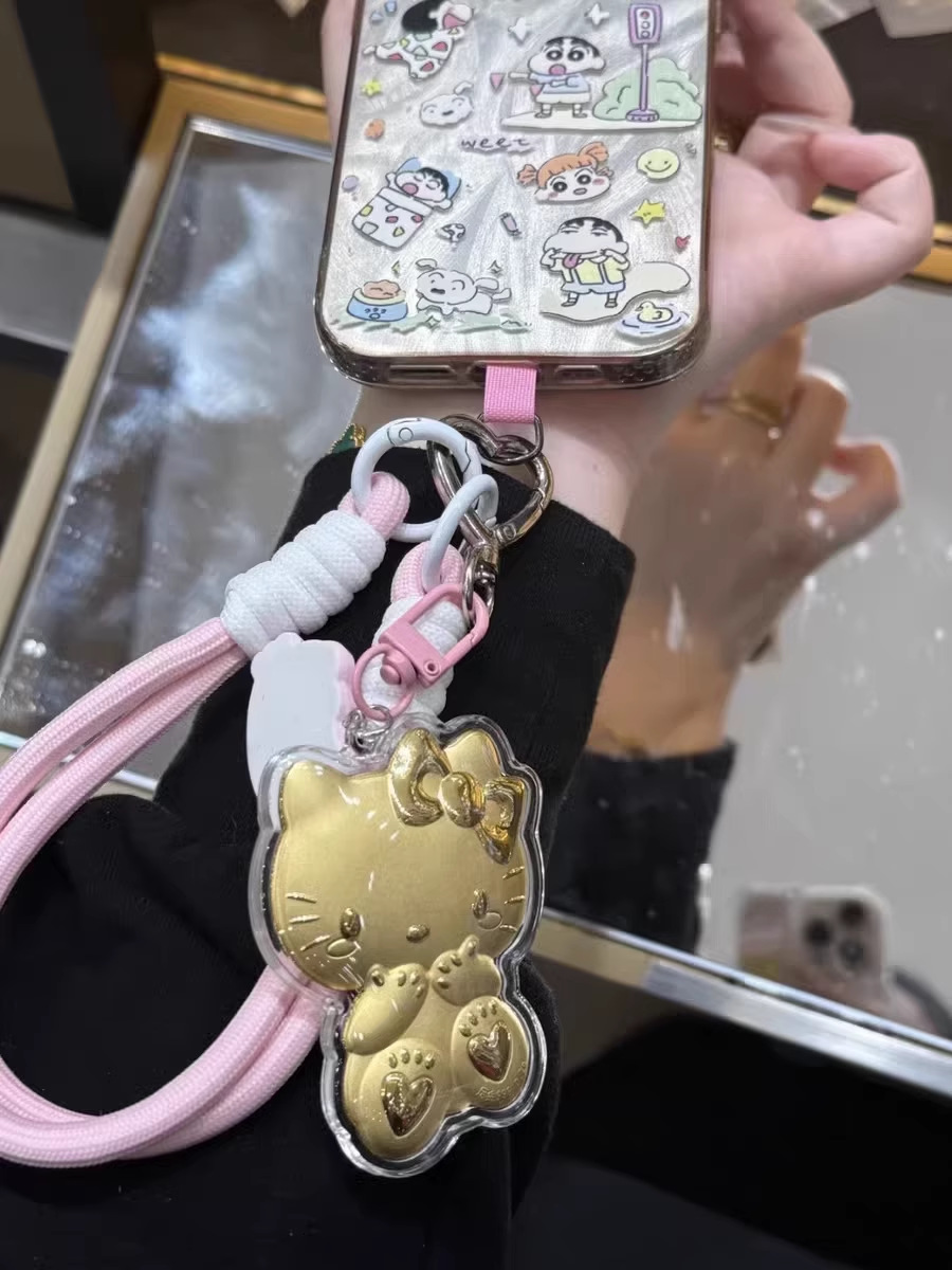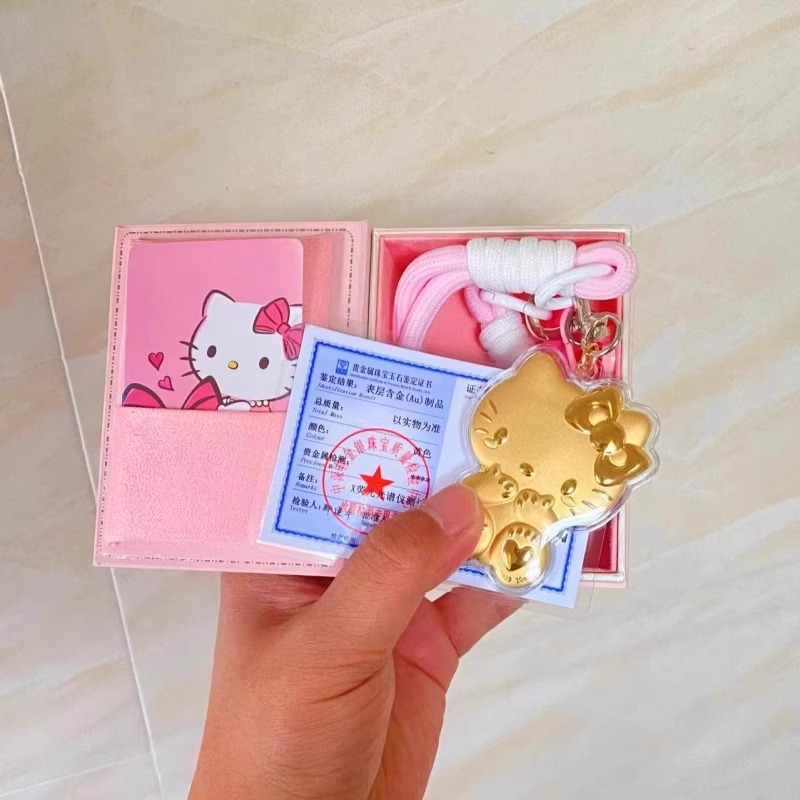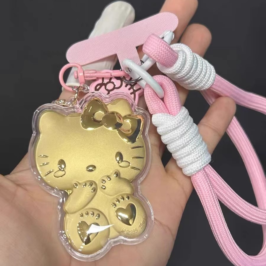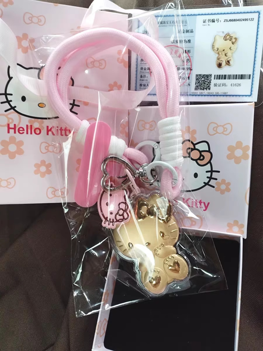 헬로키티 고양이 열쇠고리 순금 999KT 펜던트 핸드폰 줄 가방 자동차 장식 리본