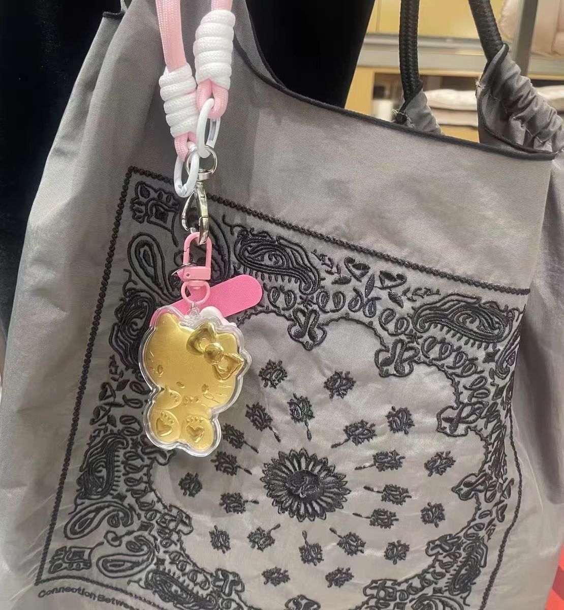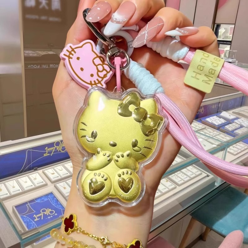 헬로키티 고양이 열쇠고리 순금 999KT 펜던트 핸드폰 줄 가방 자동차 장식 리본스토어 가기