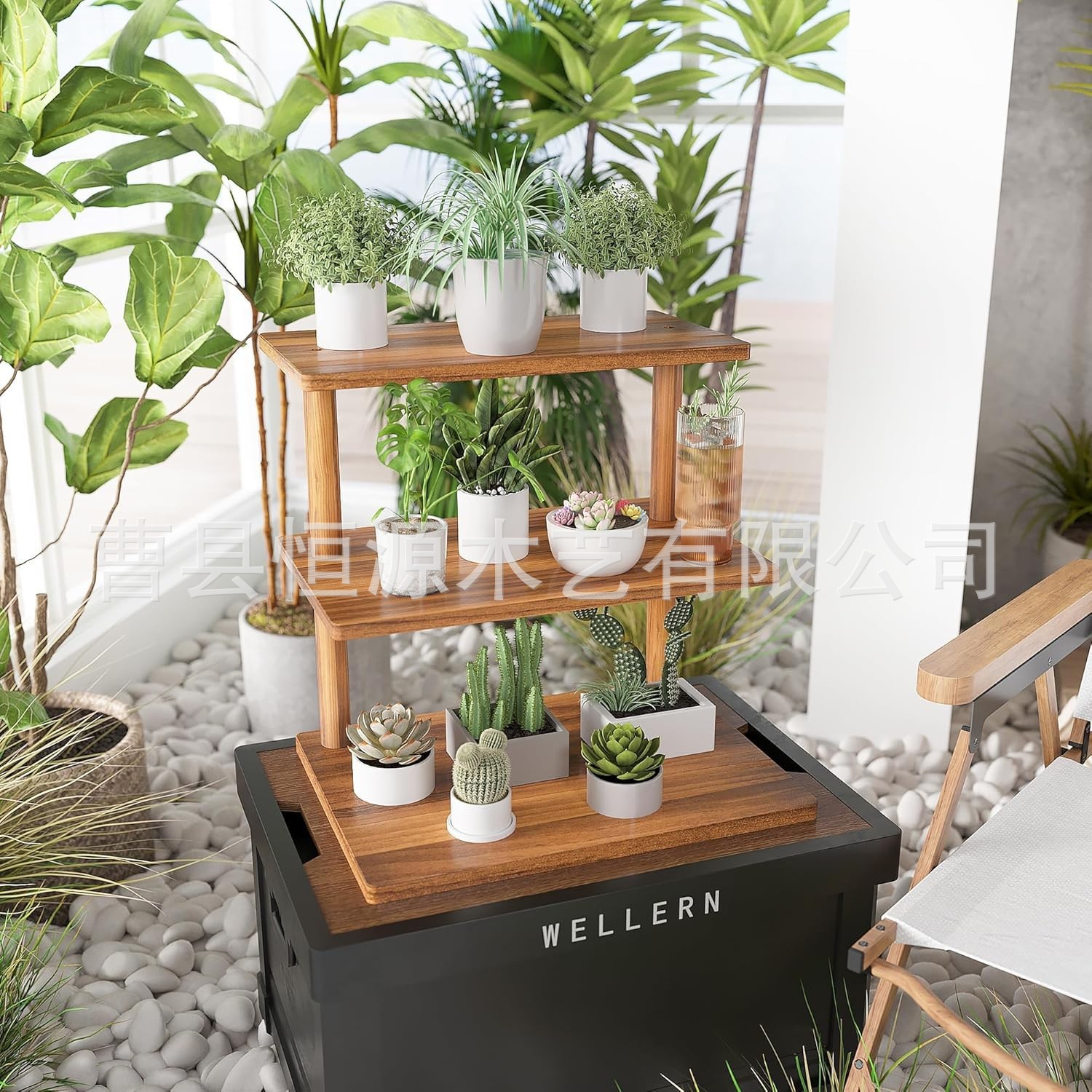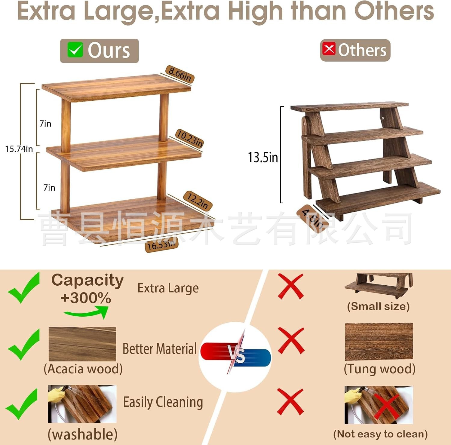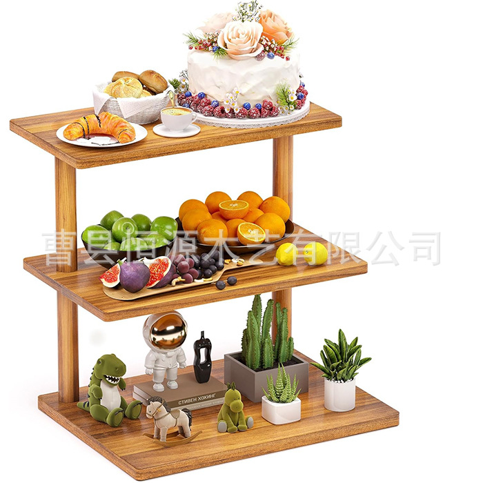 나무 주방 조미료 보관함 단단한 나무 식물 랙 3 층 보관함 데스크탑 디저트 디스플레이 랙 케이크 랙