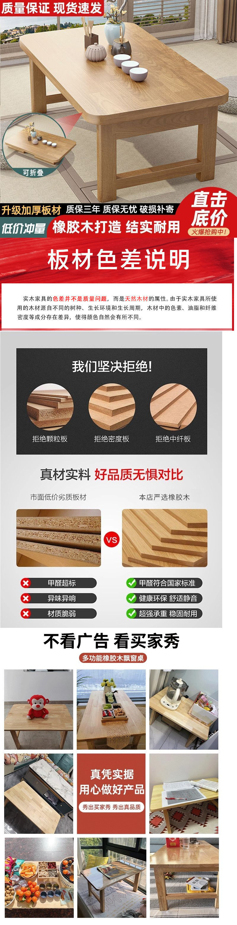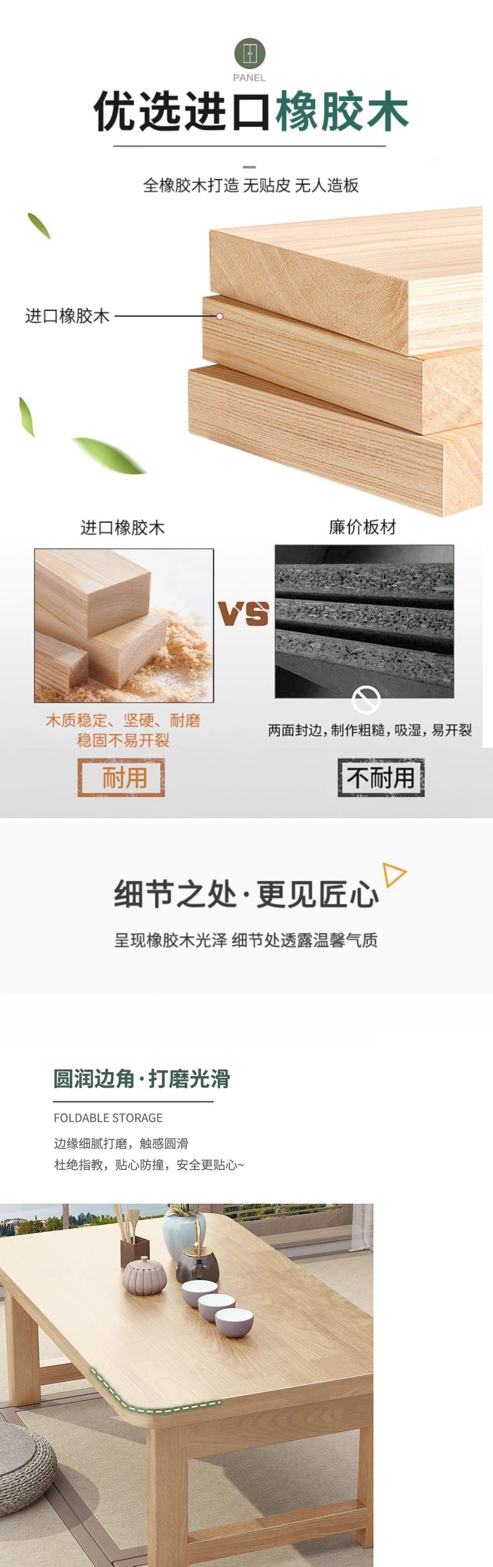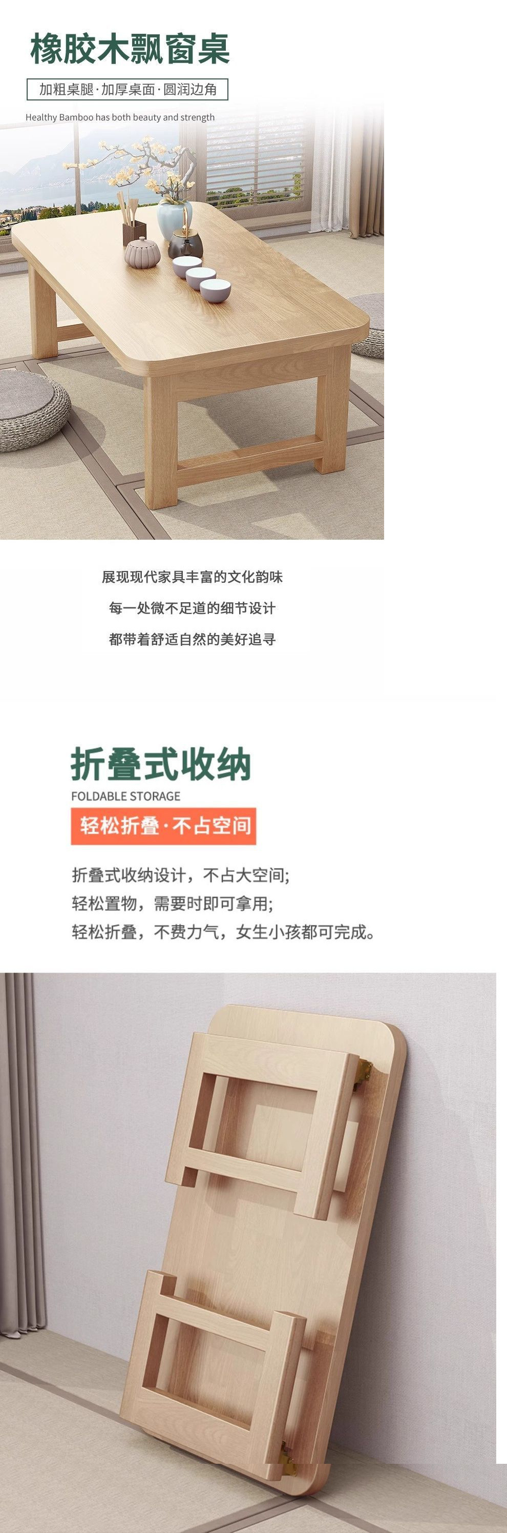 접이식 테이블 고무 나무 침대 테이블 가정용 단단한 나무 다다미 작은 커피 테이블 베드 창 테이블 침대 학습 테이블 컴퓨터 낮은 테이블스토어 가기