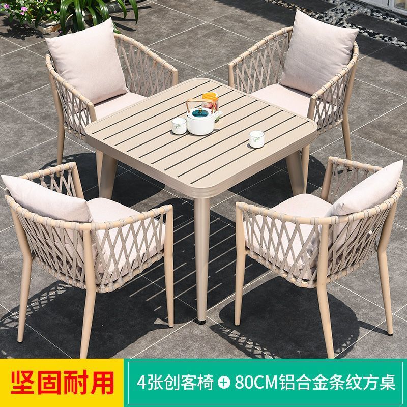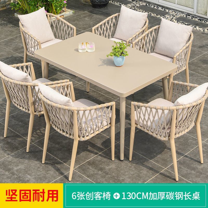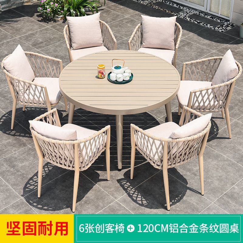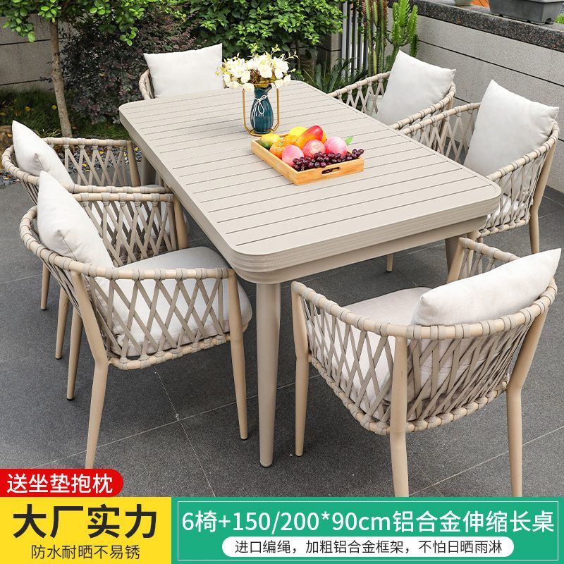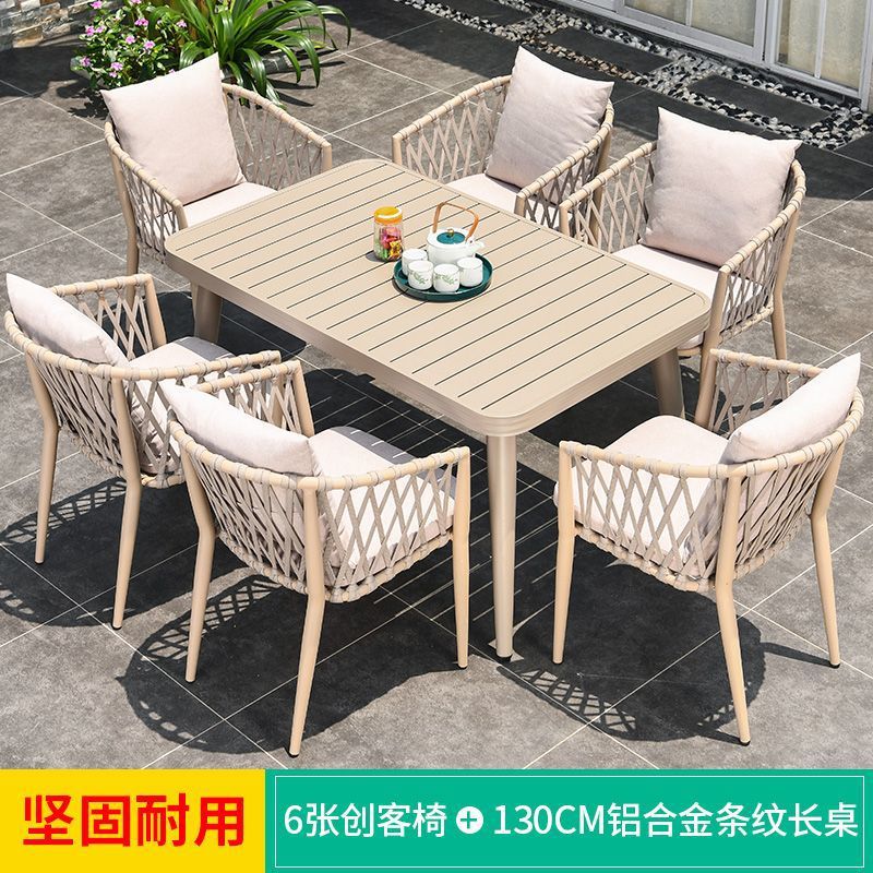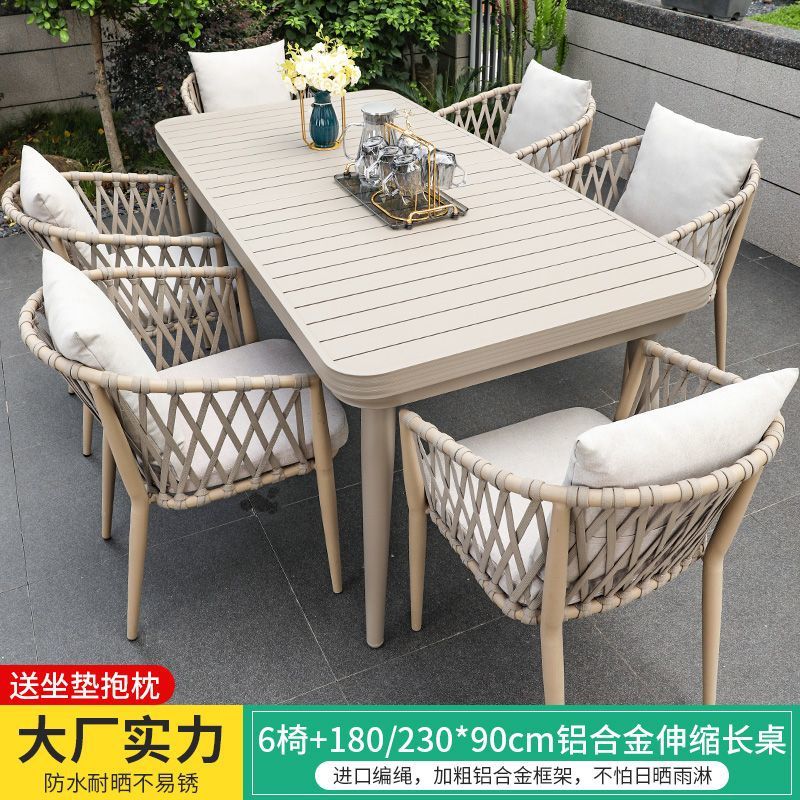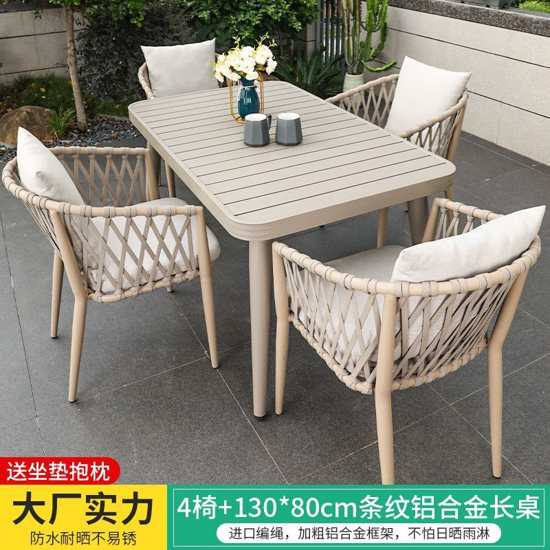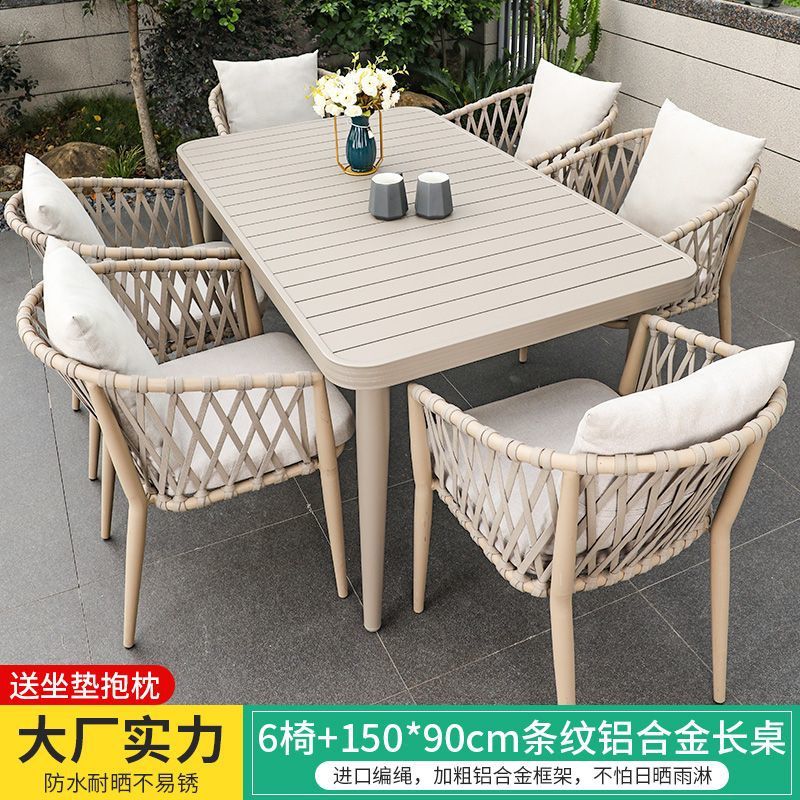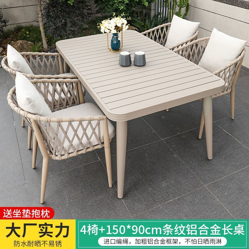 야외 북유럽 식탁 창의적인 테이블과 의자 안뜰 정원 안뜰 알루미늄 합금 야외 발코니 빌라 레저 긴 테이블