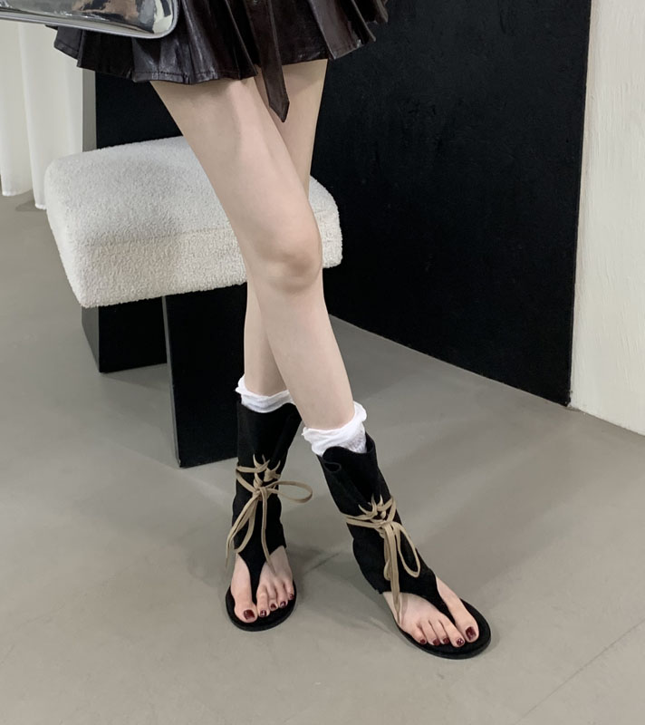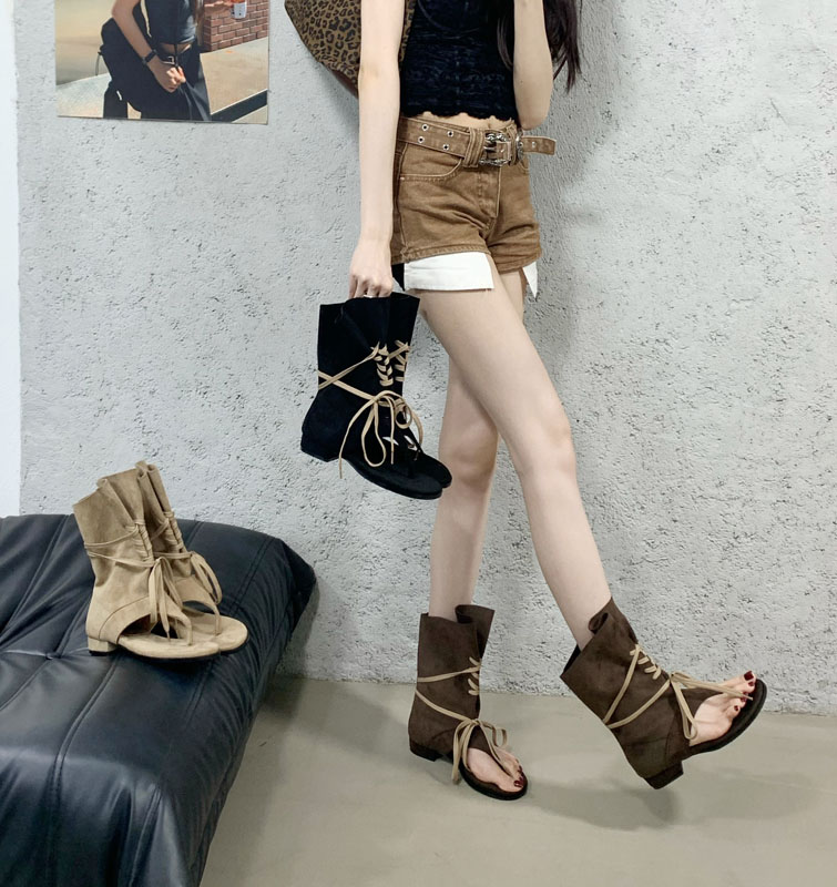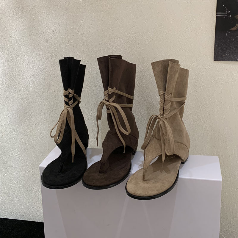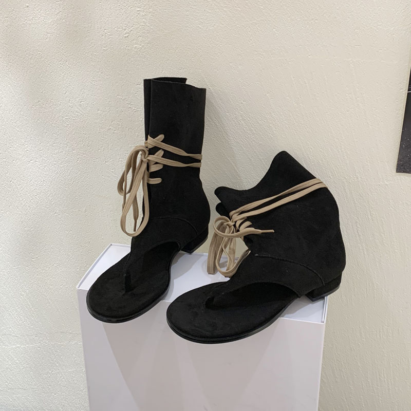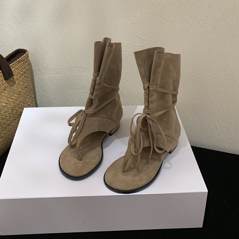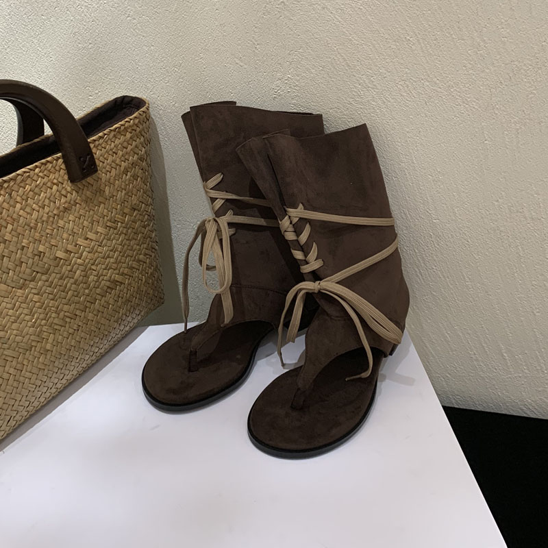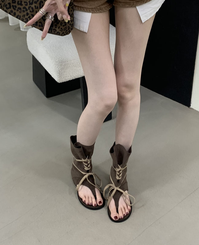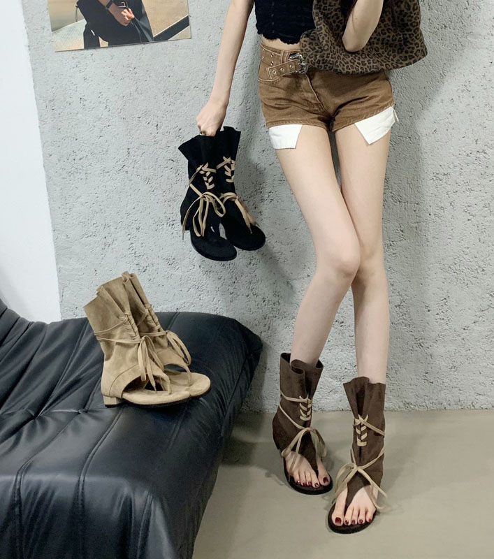 프렌치 두꺼운 밑창 풀업 플립플롭 2025 여름 신작 바지 샌들 여성용 복고풍 레이스 업 로마 샌들