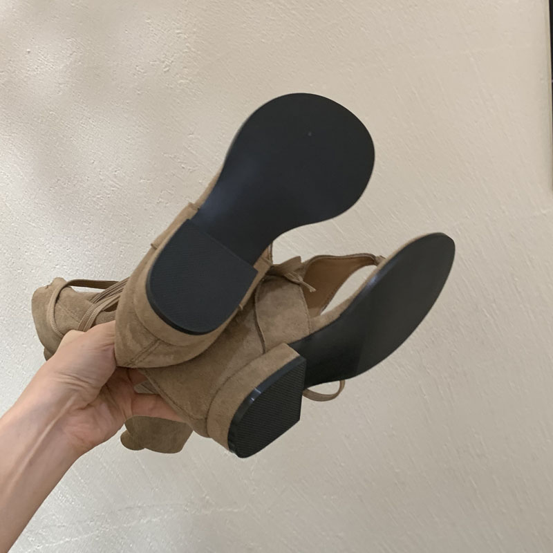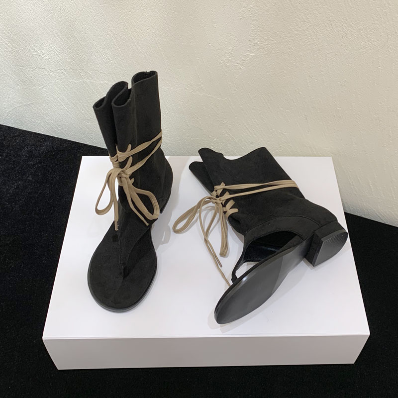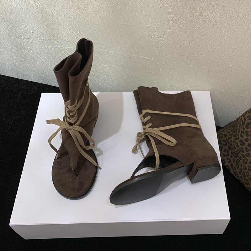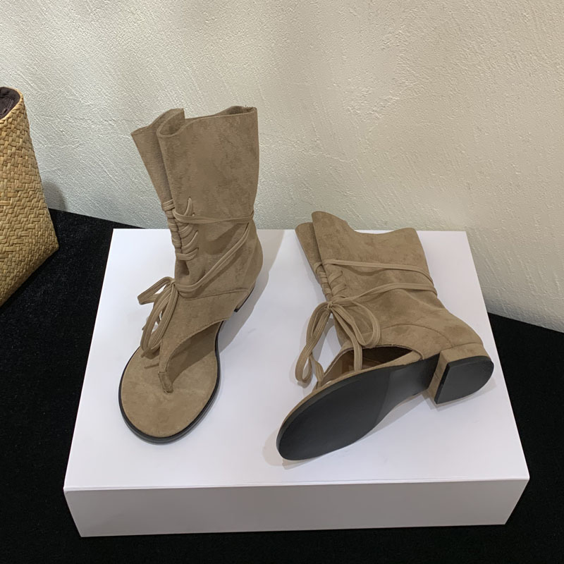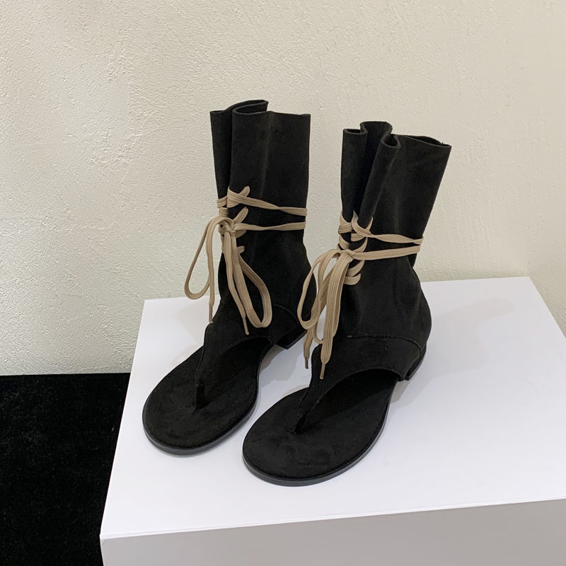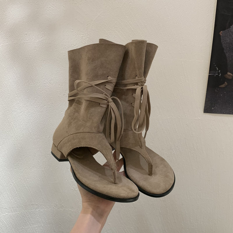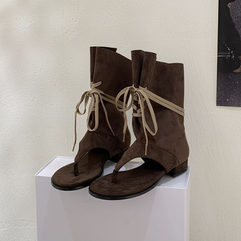 프렌치 두꺼운 밑창 풀업 플립플롭 2025 여름 신작 바지 샌들 여성용 복고풍 레이스 업 로마 샌들