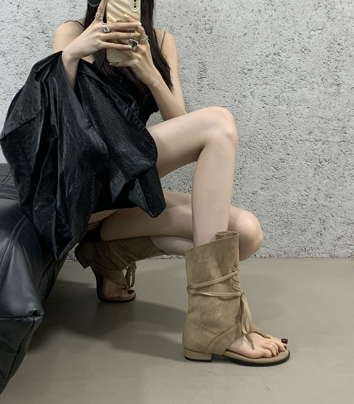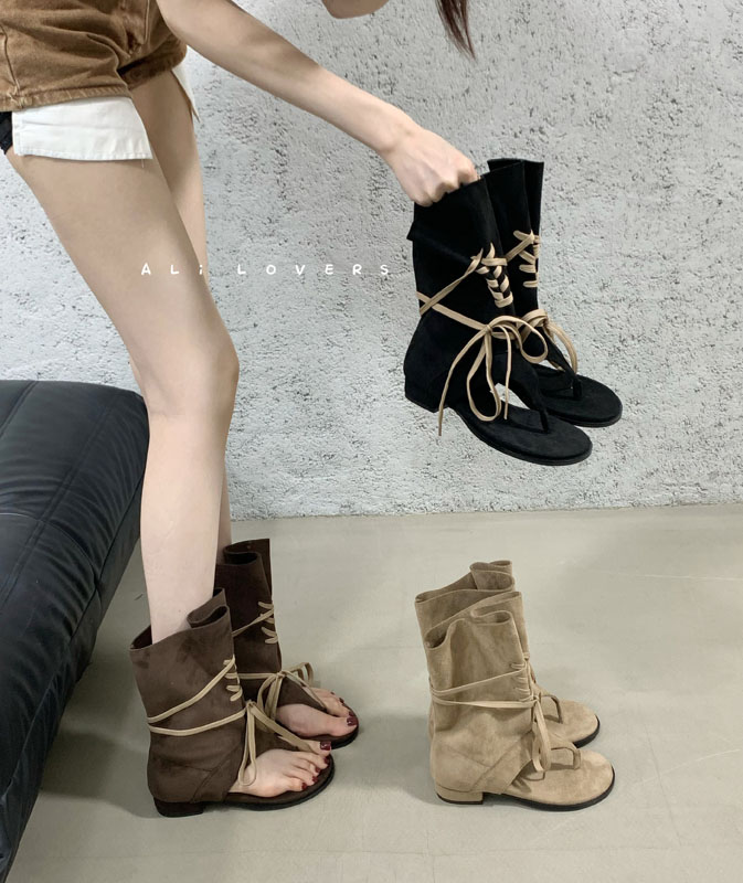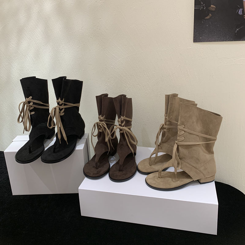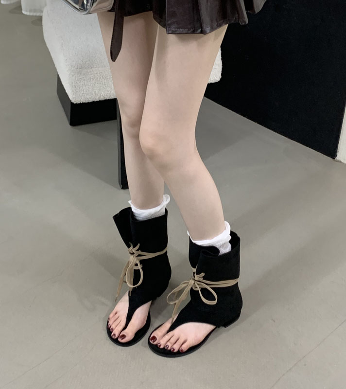 프렌치 두꺼운 밑창 풀업 플립플롭 2025 여름 신작 바지 샌들 여성용 복고풍 레이스 업 로마 샌들스토어 가기