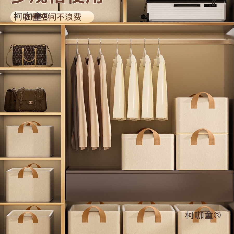 • 베이지-50*35*32CM [두꺼운 원단 | 두꺼운 철제 프레임 | 방습 및 곰팡이 방지]☆