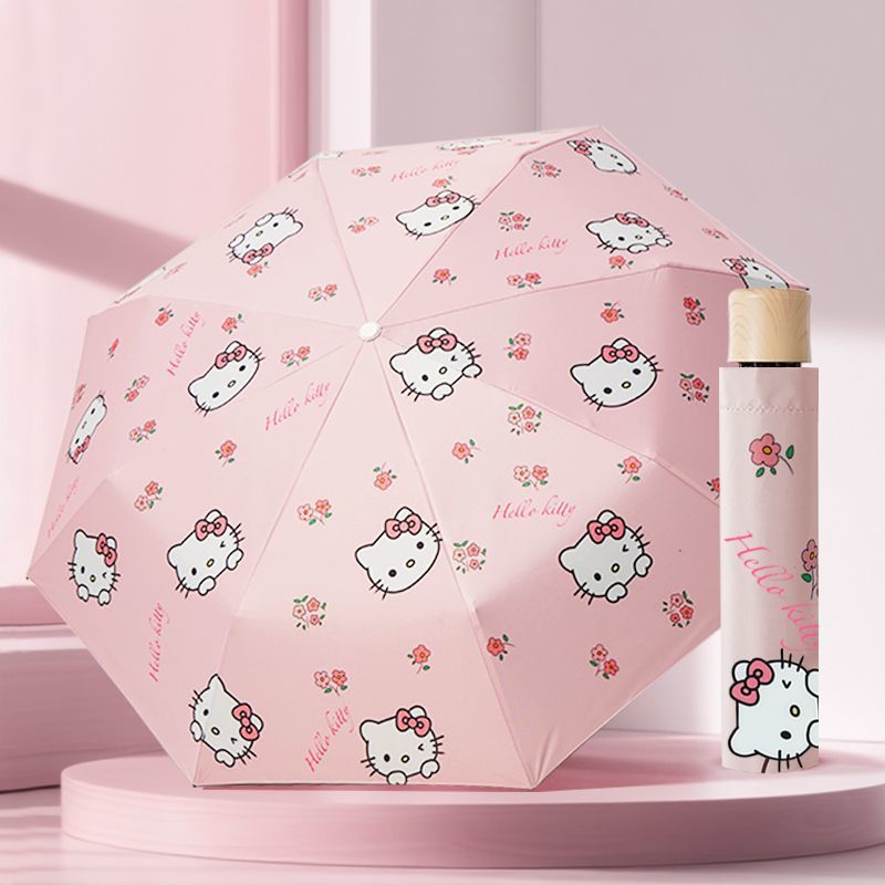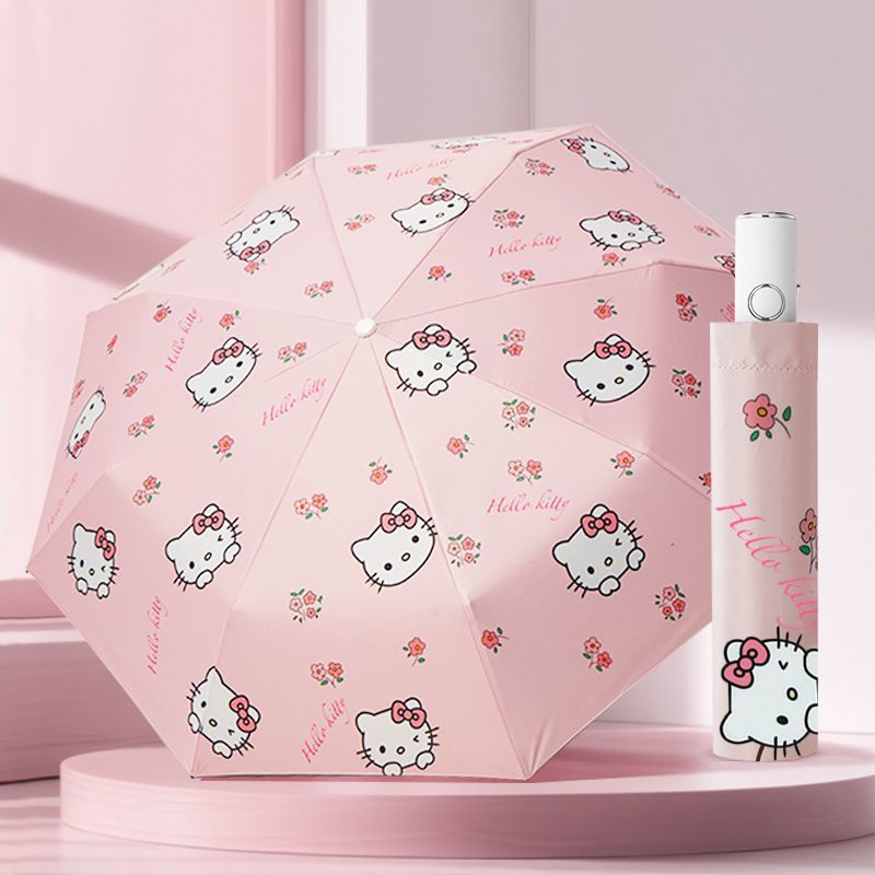 헬로키티 귀여운 완전 자동 우산 자외선 차단 UV 방지 비닐 파라솔 비 또는 빛 접는 우산스토어 가기