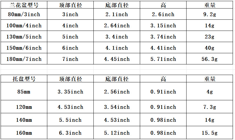80/100/130/150/180mm蝴蝶兰花盆+底托