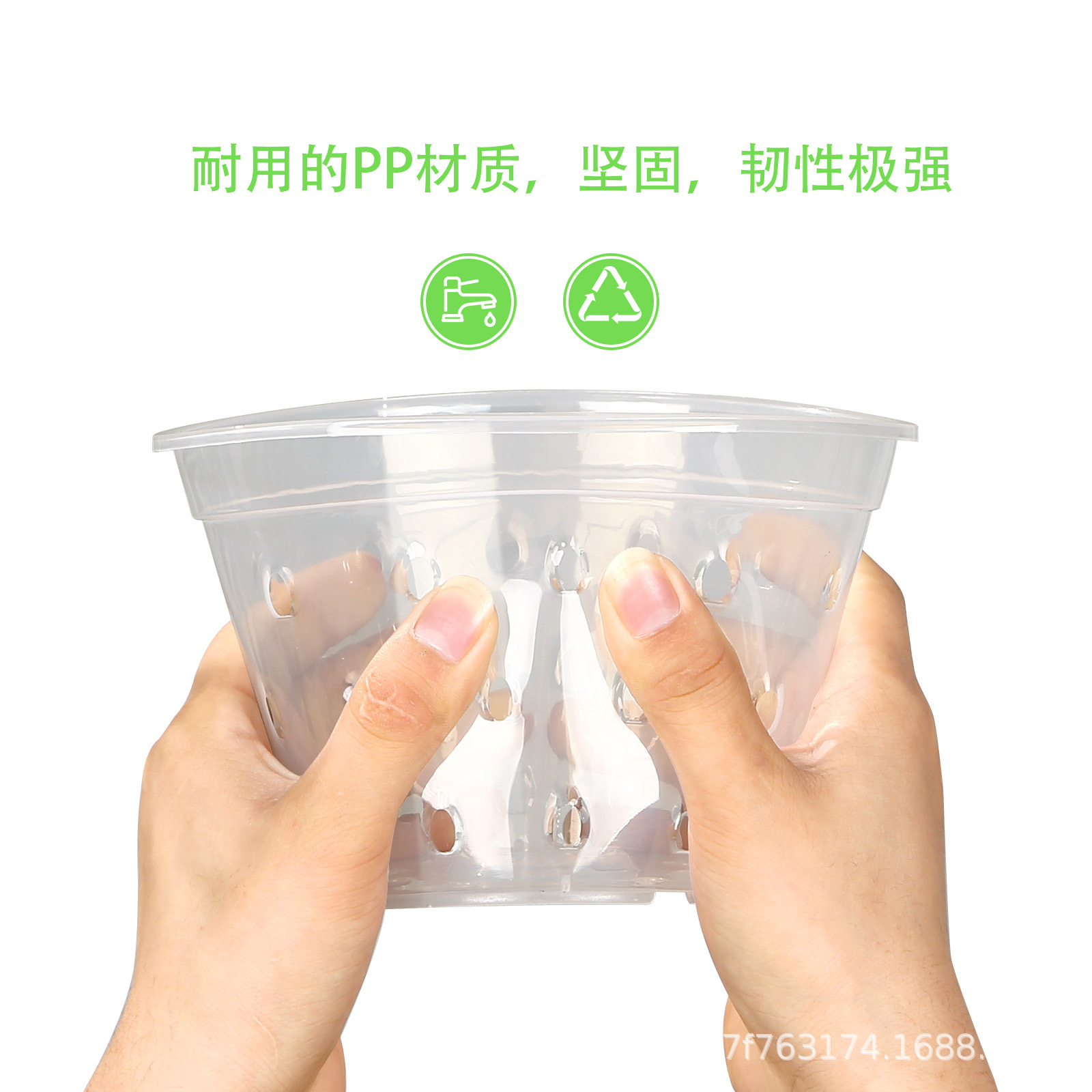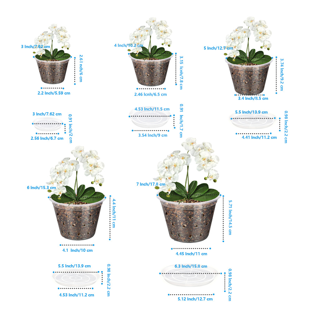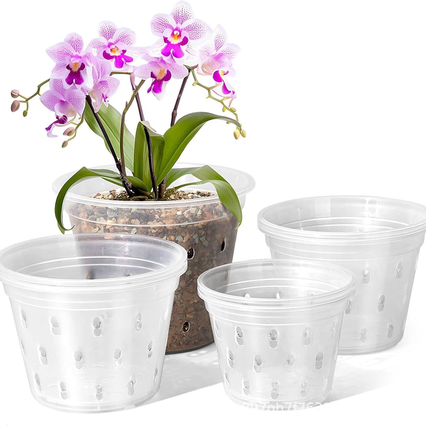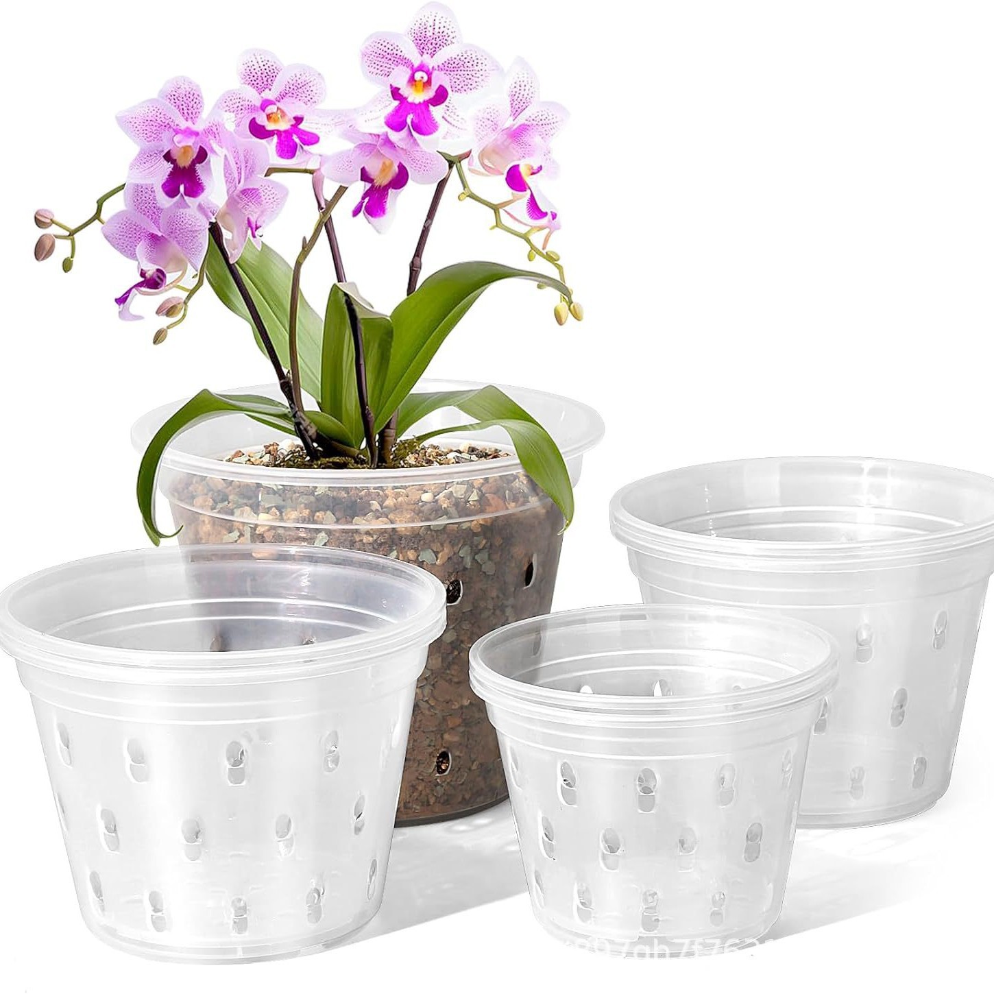 실내 및 실외용 배수구와 투명 플라스틱 난초 화분이 있는 난초 화분 다양한 크기의 화분
