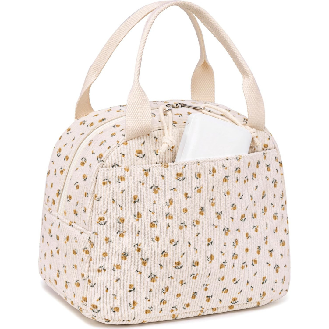 국경 간 신제품 코듀로이 프린트 휴대용 점심 가방 대용량 여행 피크닉 아이스 가방 작업 단열 가방스토어 가기