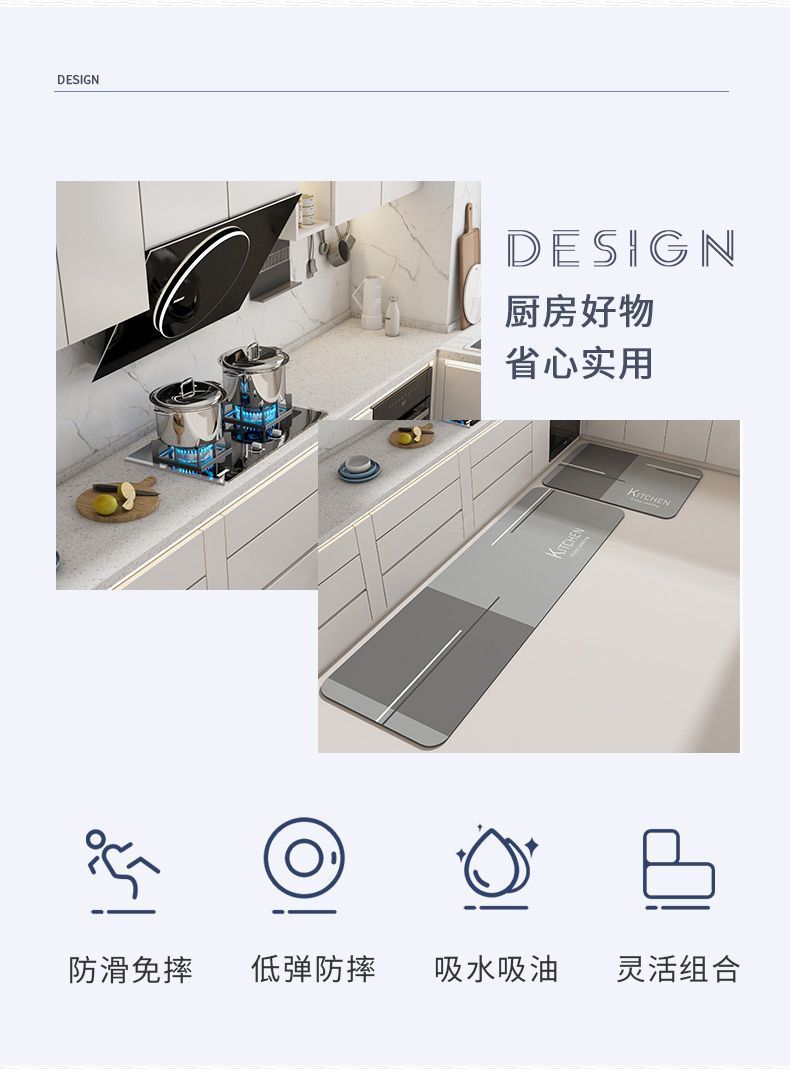 규조토 주방 바닥 매트, 흡수성, 방유 및 미끄럼 방지 발 매트, 욕실 욕실 노워시 속건 매트, 긴 카펫
