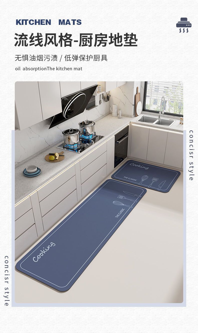 규조토 주방 바닥 매트, 흡수성, 방유 및 미끄럼 방지 발 매트, 욕실 욕실 노워시 속건 매트, 긴 카펫스토어 가기